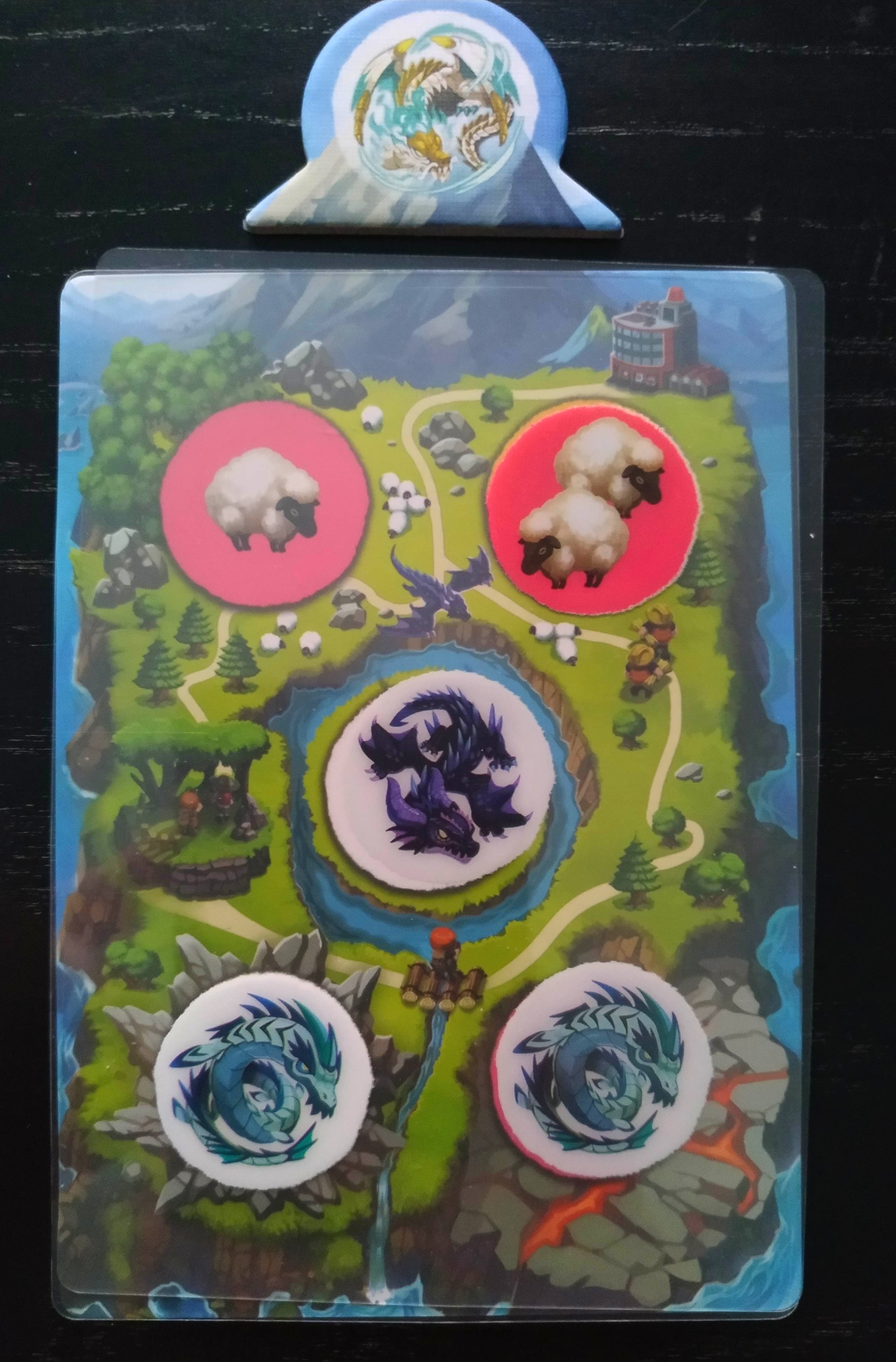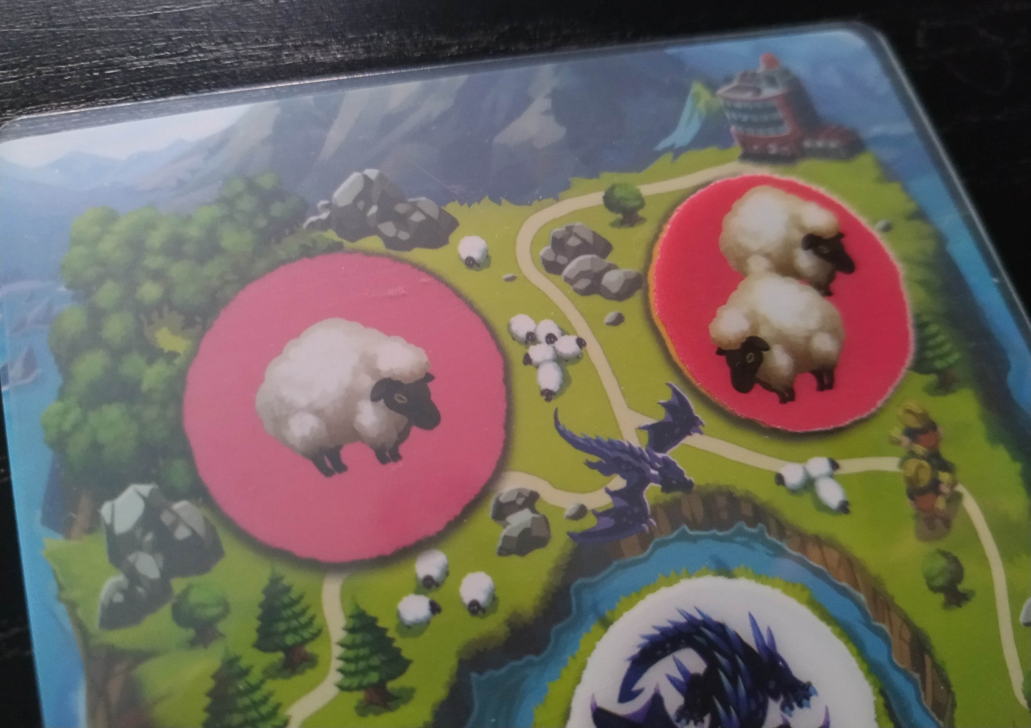 Por último, nos encontramos con una de las fases más importantes y que más quebraderos de cabeza nos va a dar: la alimentación. Cada dragón debe tener una oveja que pueda comer. Así pues, si tenemos a la vista en nuestras islas al menos tantas ovejas como dragones, podremos estar tranquilos ya que la norma es que perderemos tantos visitantes como ovejas falten en la ecuación  de igualdad.