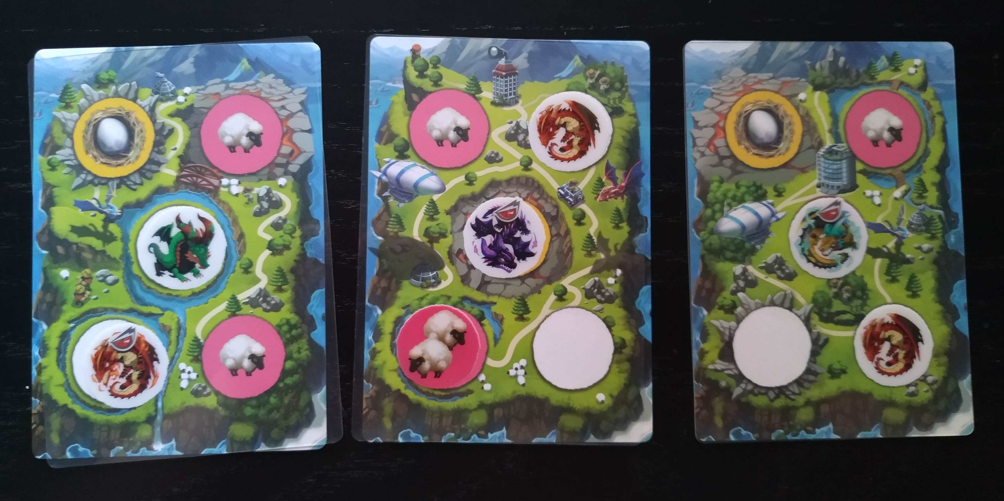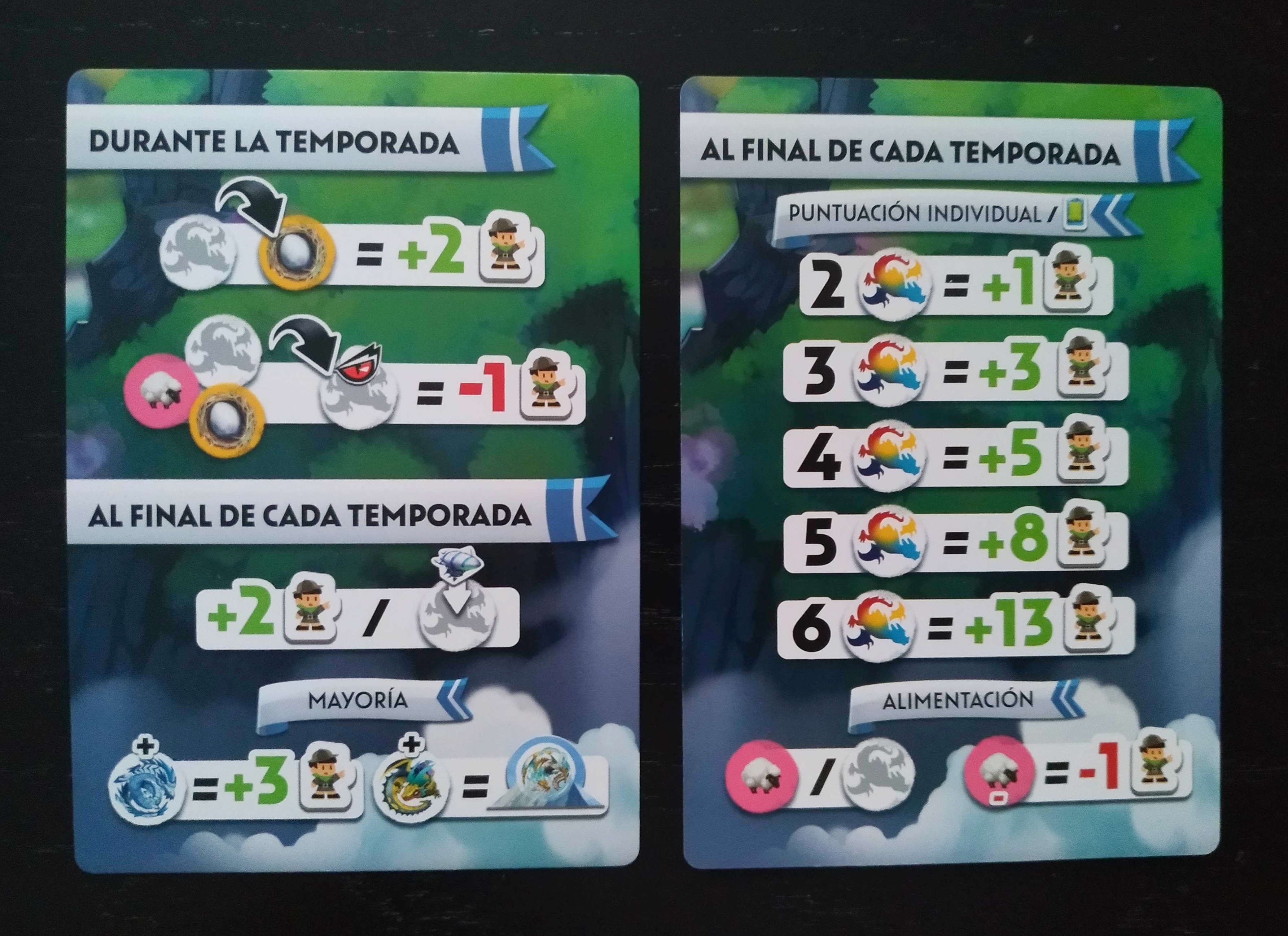 En segundo lugar hay que estar atentos a cuál es la especie de dragón que está de moda en cada temporada (negro, verde o rojo), ya que, al final de dicha temporada, ganaremos dos puntos por cada uno de ellos que estén en alguna de nuestras islas.