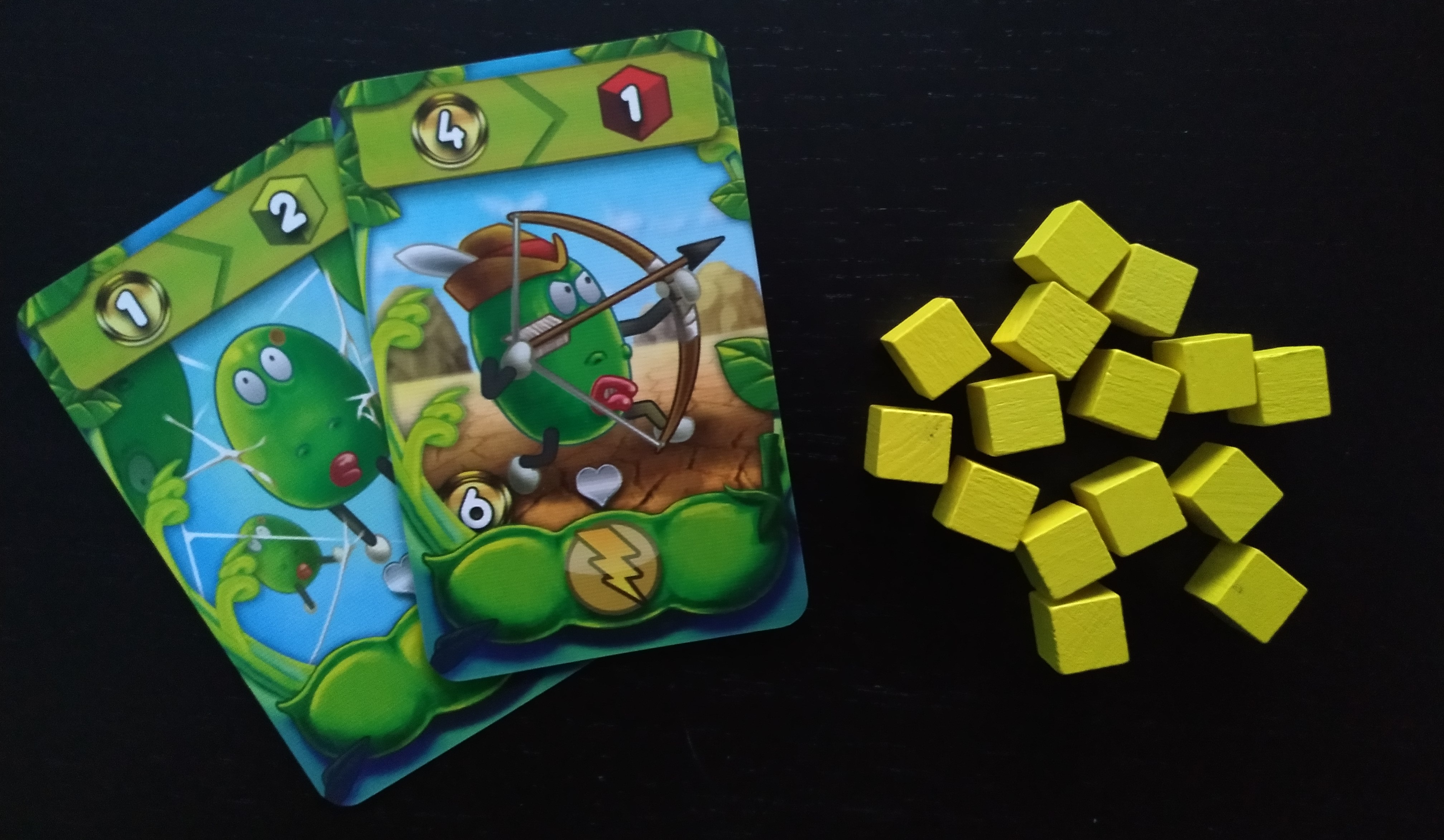 - Coger un cubo amarillo por cada símbolo de ataque de nuestro equipo (sumando edamames y dragones) con un máximo de 3 cubitos.