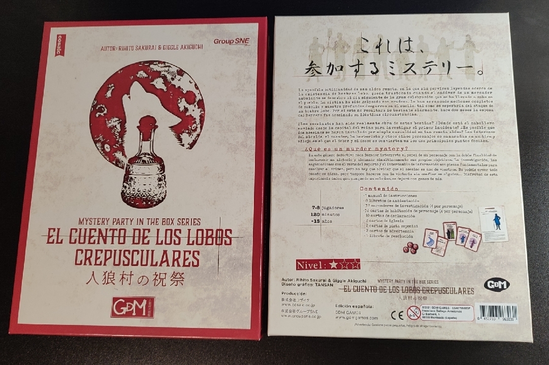 El cuento de los lobos crepusculares es un juego de cartas deductivo en el que cada jugador interpreta el papel de un personaje con la doble finalidad de esclarecer un misterio y alcanzar simultáneamente sus propios objetivos. En esta ocasión unos asesinatos suceden en una remota aldea donde perviven leyendas sobre unos temibles hombres lobo asesinos…
