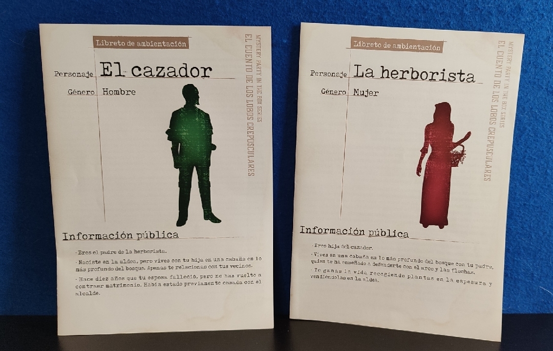 Cada personaje de la historia tiene su propio libreto. En la portada de cada uno aparece la información pública de cada personaje, es decir, todos los jugadores la pueden conocer. Por el contrario, la información que se encuentra en el interior, es totalmente secreta y solo el jugador que encarna al personaje puede leerla y conocerla antes de empezar a jugar. Aquí es donde se encuentran los secretos que oculta el personaje y los objetivos que tiene en la partida.