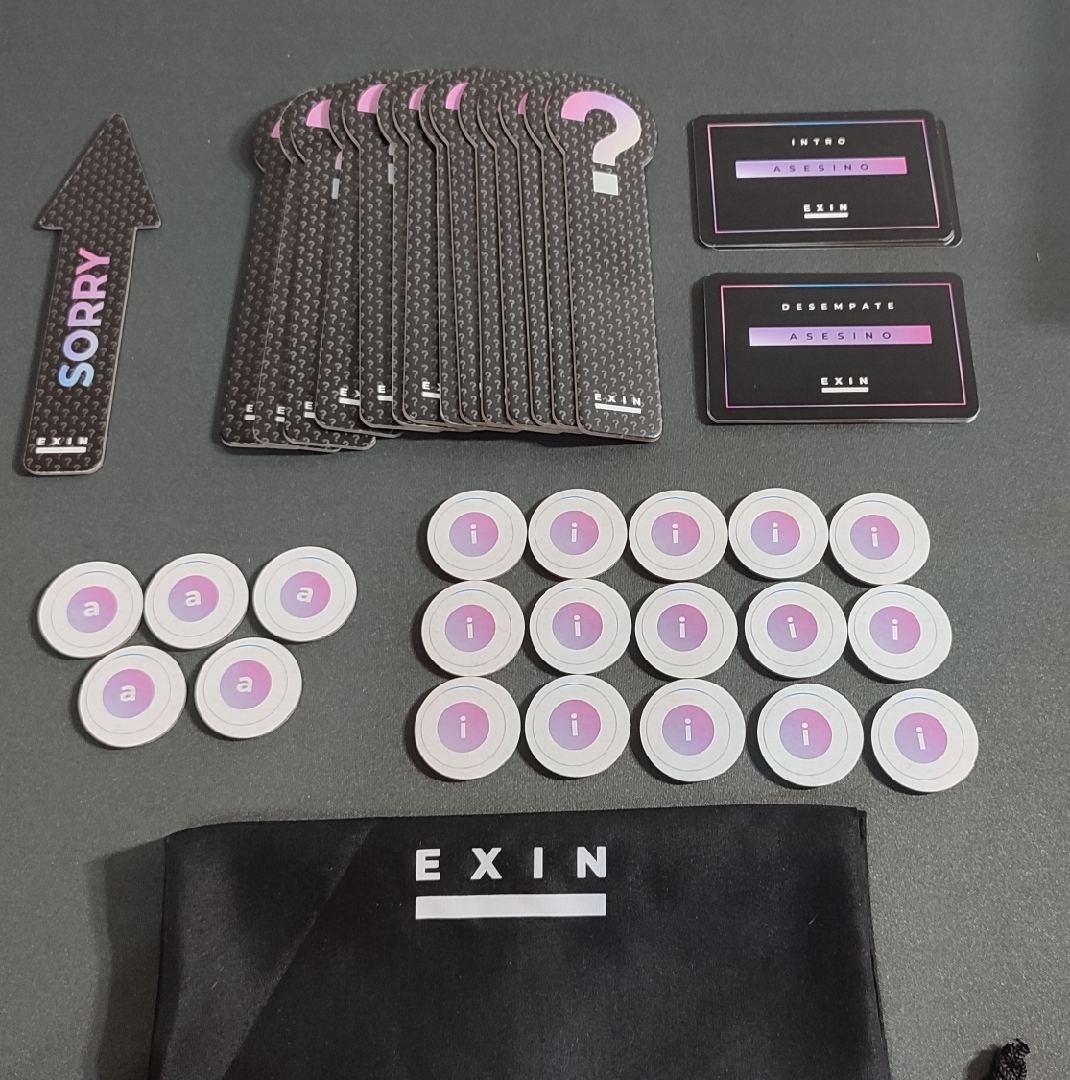 Como vemos, un juego sencillo y bastante clásico pero que en Exin fiesta han querido incluir algunos elementos o decisiones novedosas como la eliminación del orador, que suele guiar estas sesiones, gracias a la utilización de la flecha y la cuenta atrás, haciendo que participemos todos en el juego. También la forma de selección de roles, a través de fichas y no de cartas, la forma de inculparse y la posibilidad del alegato final son otras de las pequeñas diferencias que nos encontramos en este juego del asesino. Pequeños cambios que nos han gustado y permiten diferenciarse un poco del resto.