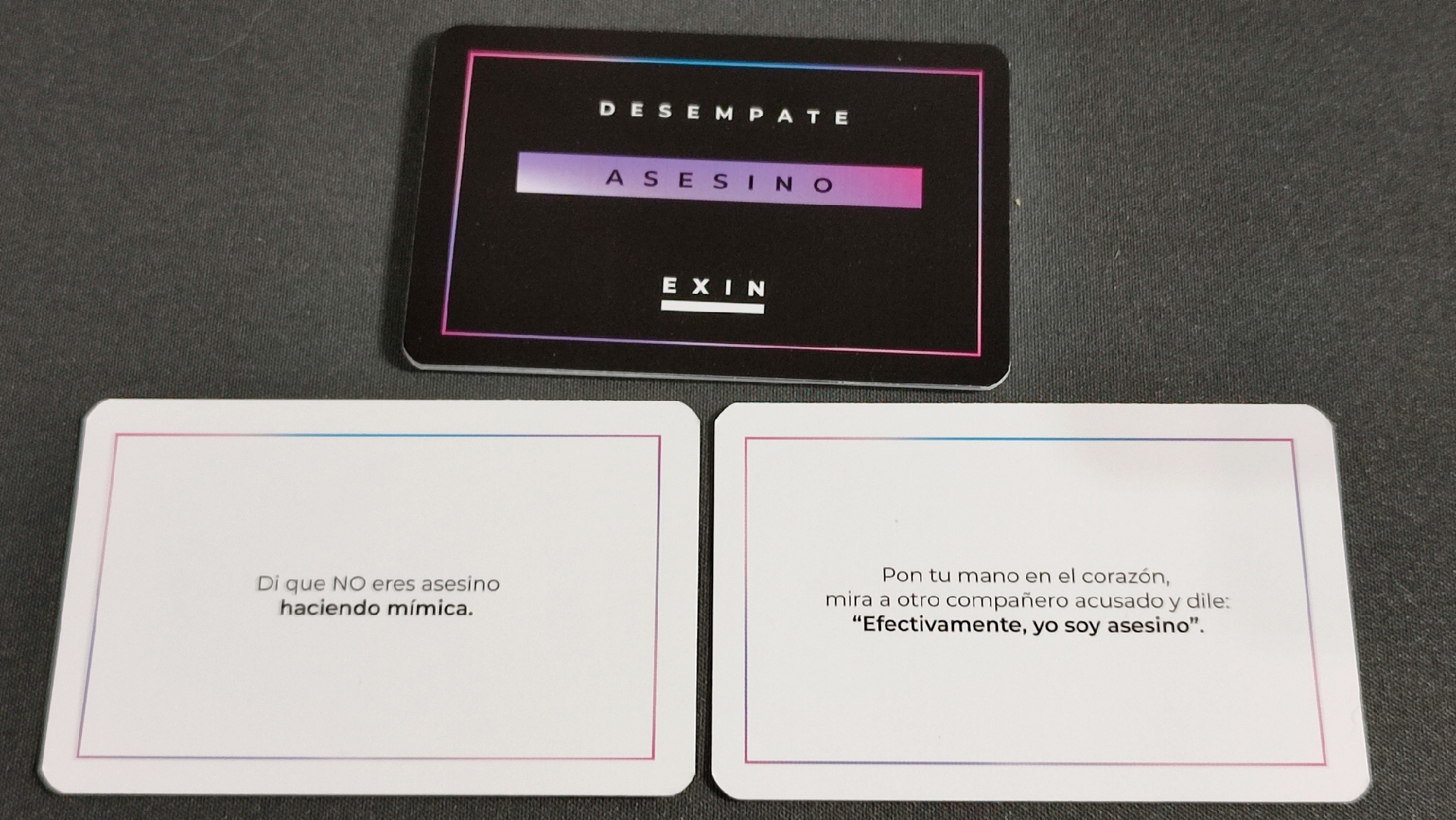 - Si es el asesino, pero hay más de uno: el asesino queda eliminado pero se juega una nueva ronda.