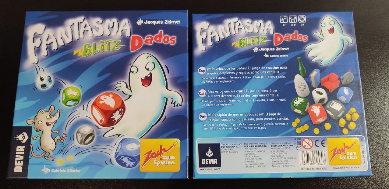 Así se nos presenta esta versión de dados del conocido juego Fantasma Blitz que nos trae de nuevo la editorial Devir y que ha sido creado por Jacques Zeimet e ilustrado por Gabriela Silveira.