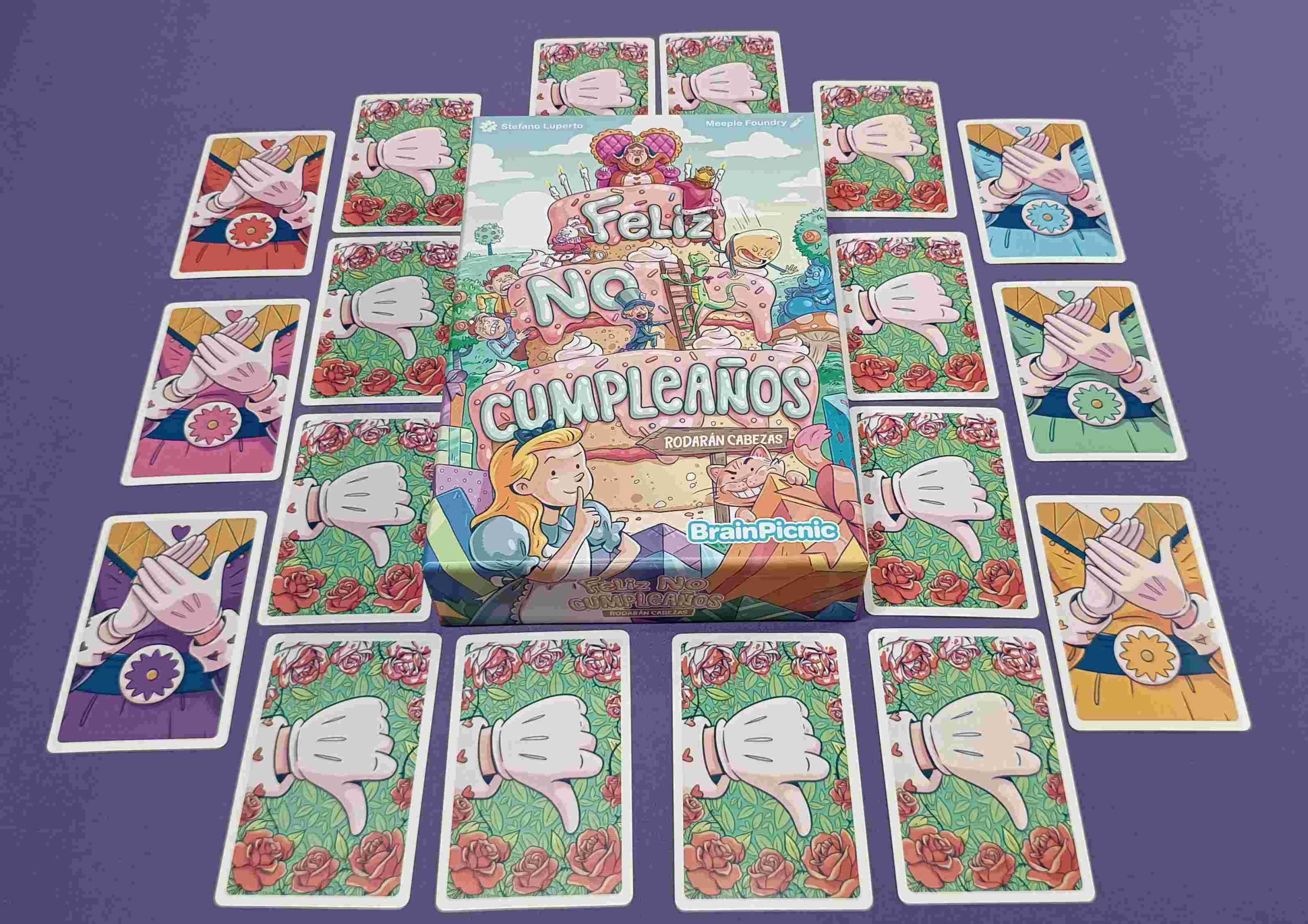 Así se presenta Feliz no cumpleaños, un juego creado por Stefano Luperto, ilustrado por Meeple Foundry y que nos trae la editorial BrainPicnic.