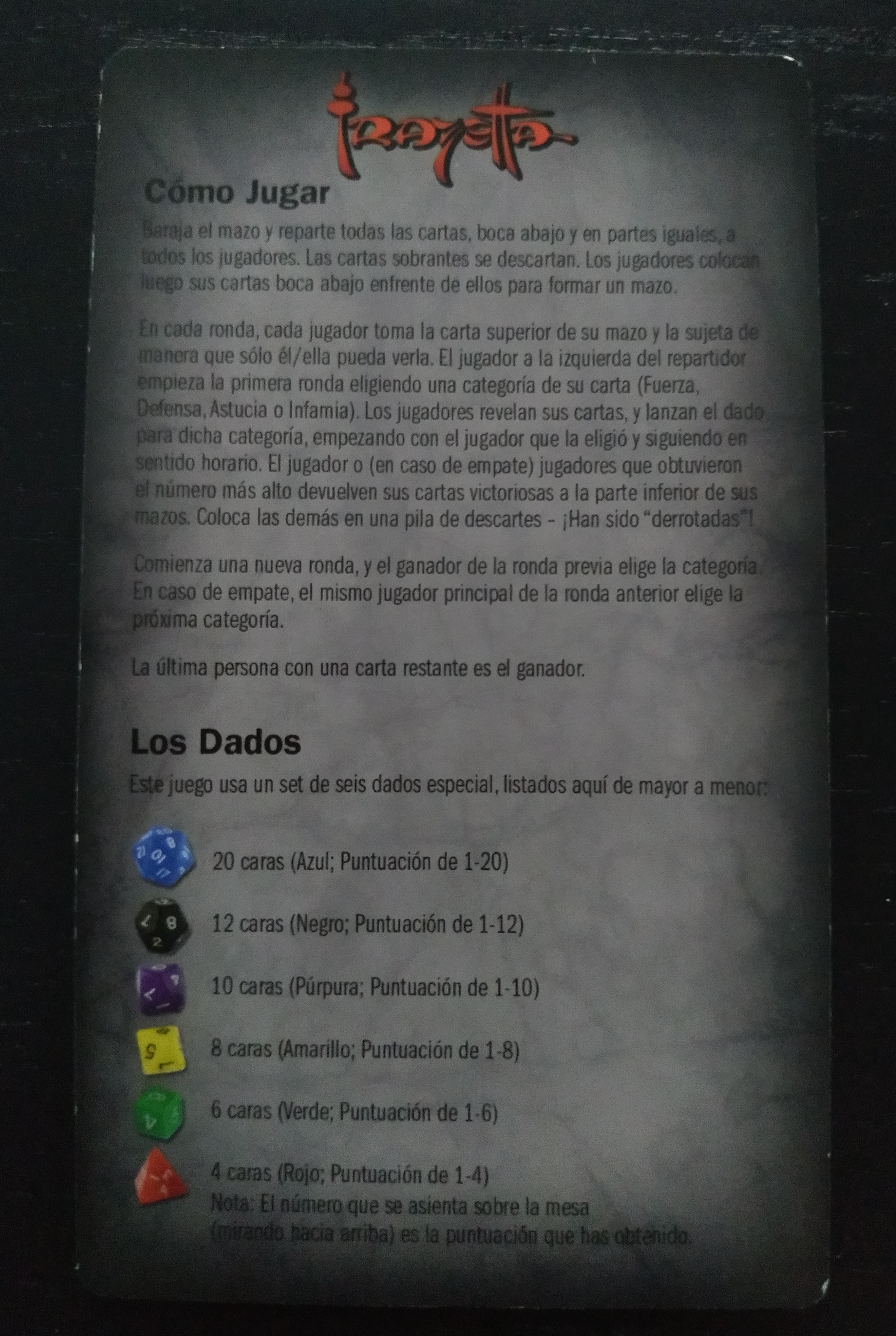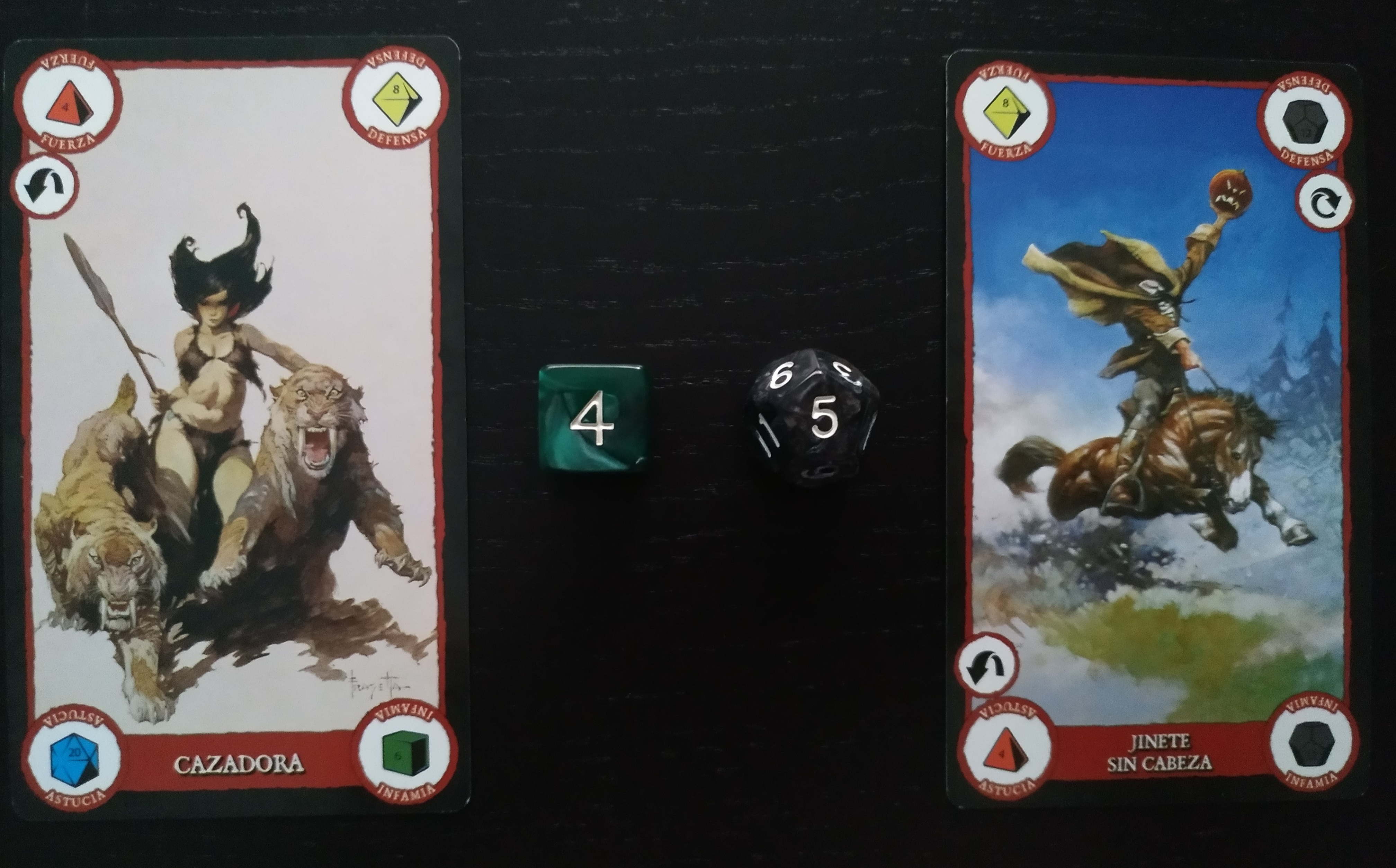 Después, todos lanzarán el dado correspondiente a dicha habilidad y determinarán quién gana y quién pierde el combate. Una vez resuelto, el ganador mantiene su carta, mientras que el perdedor descarta la suya. El último jugador al que le quede una carta, será el ganador de la partida.
