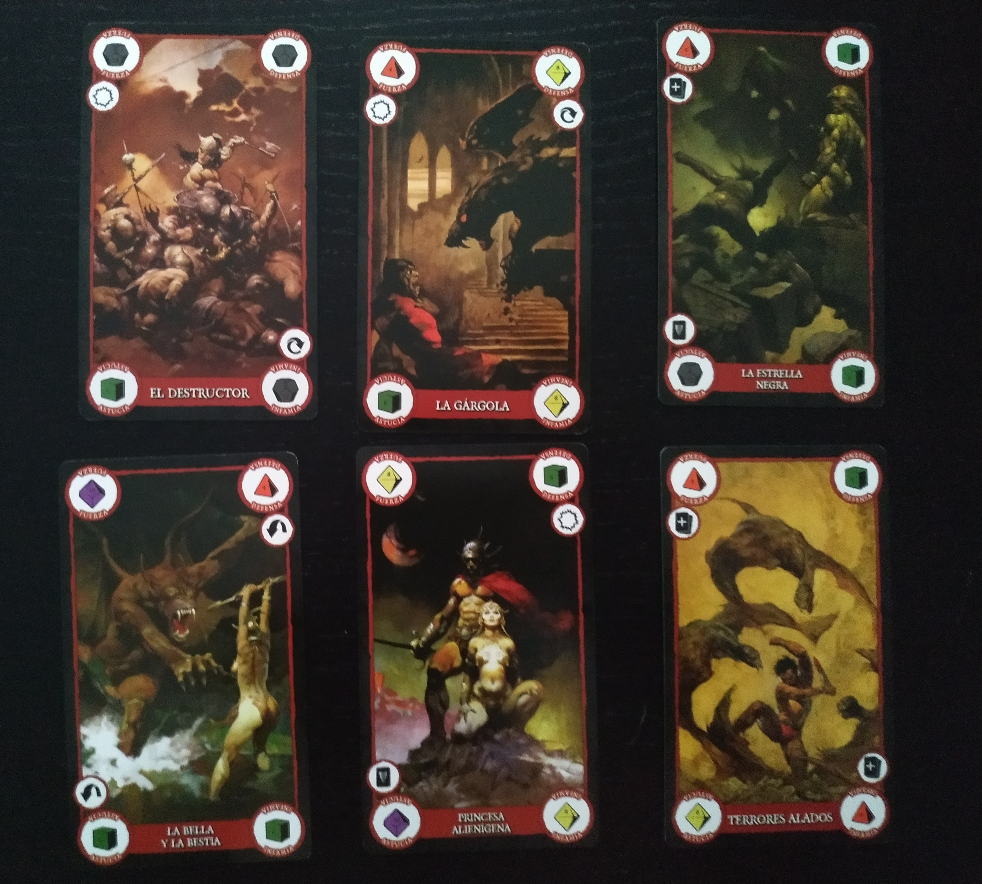 De hecho, nosotros hemos probado a jugar con una variante extra que nos hemos sacado de la manga en la que en lugar de eliminar la carta del jugador que pierde, se la lleva el jugador que ha ganado. De esta forma el juego sigue manteniendo las 36 cartas todo el rato pero irán pasando de unas manos a otras. Obviamente esto convierte a Frazetta en un juego mucho más largo.