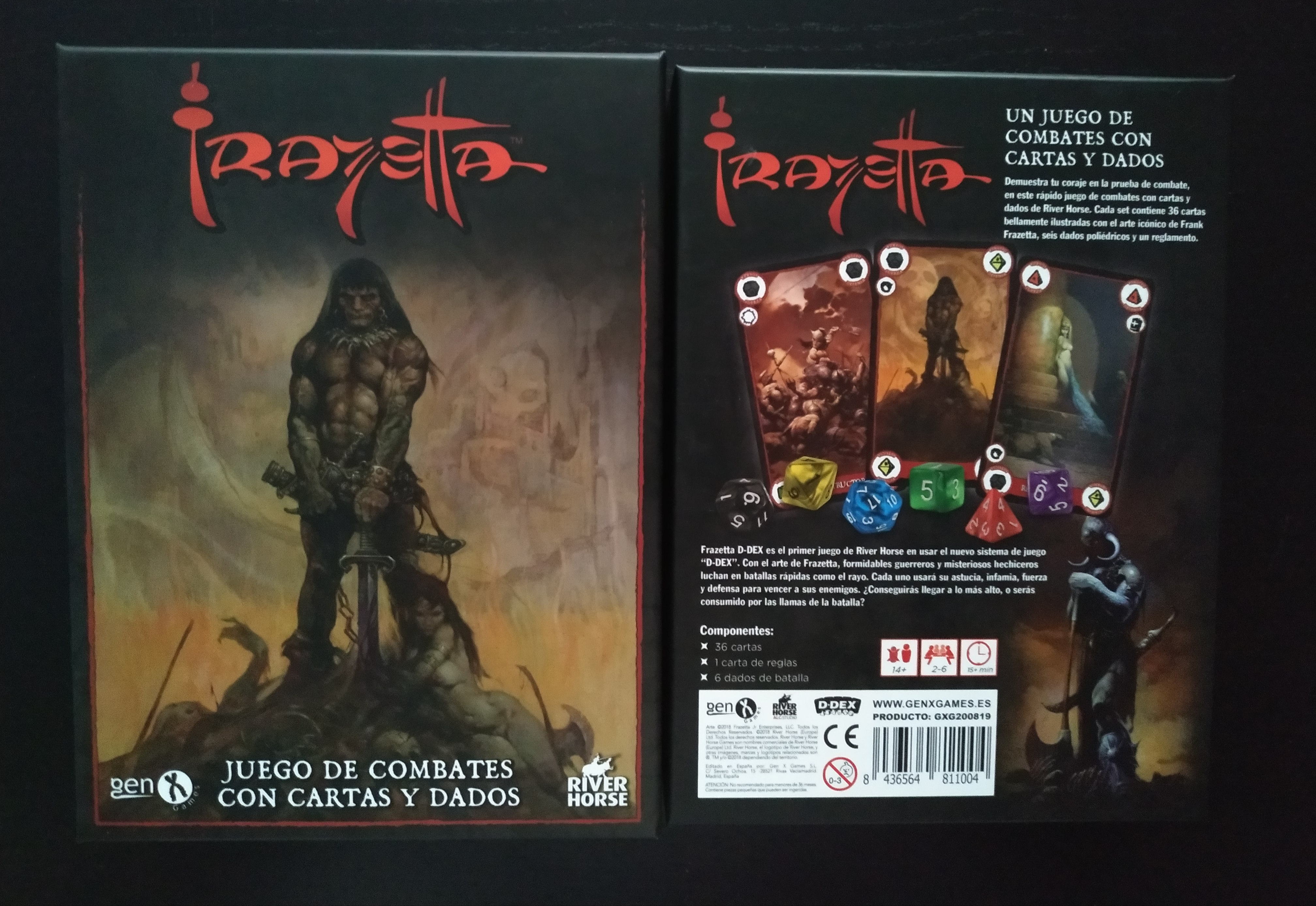 Frazetta es un juego de combates de dados y cartas emocionante, rápido y divertido. Toma su nombre del archiconocido dibujante de los años 60 y 70 debido a que utiliza su icónico arte para ilustrar las cartas.