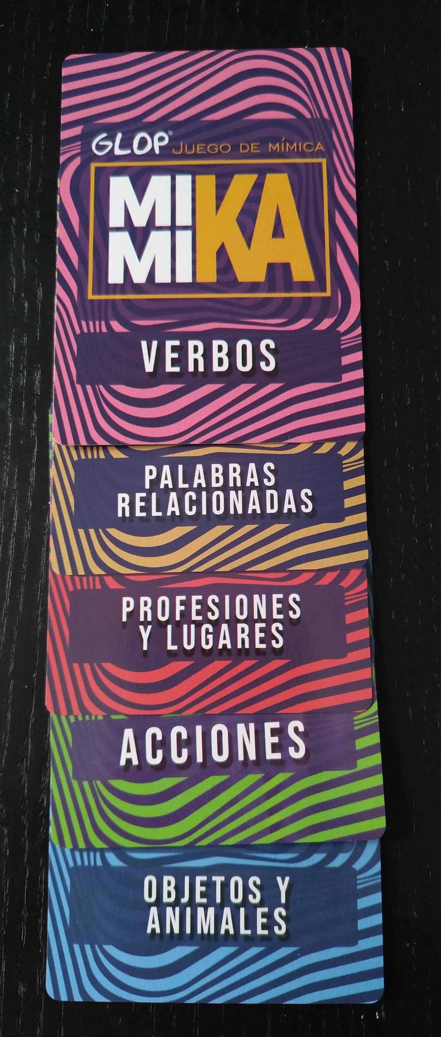 Mimika es un juego en el que los jugadores, divididos por equipos, deberán intentar que el resto de los integrantes de su equipo adivinen las diferentes palabras que muestran las cartas, utilizando para ello solo la mímica y además, deberán hacerlo en un tiempo determinado.