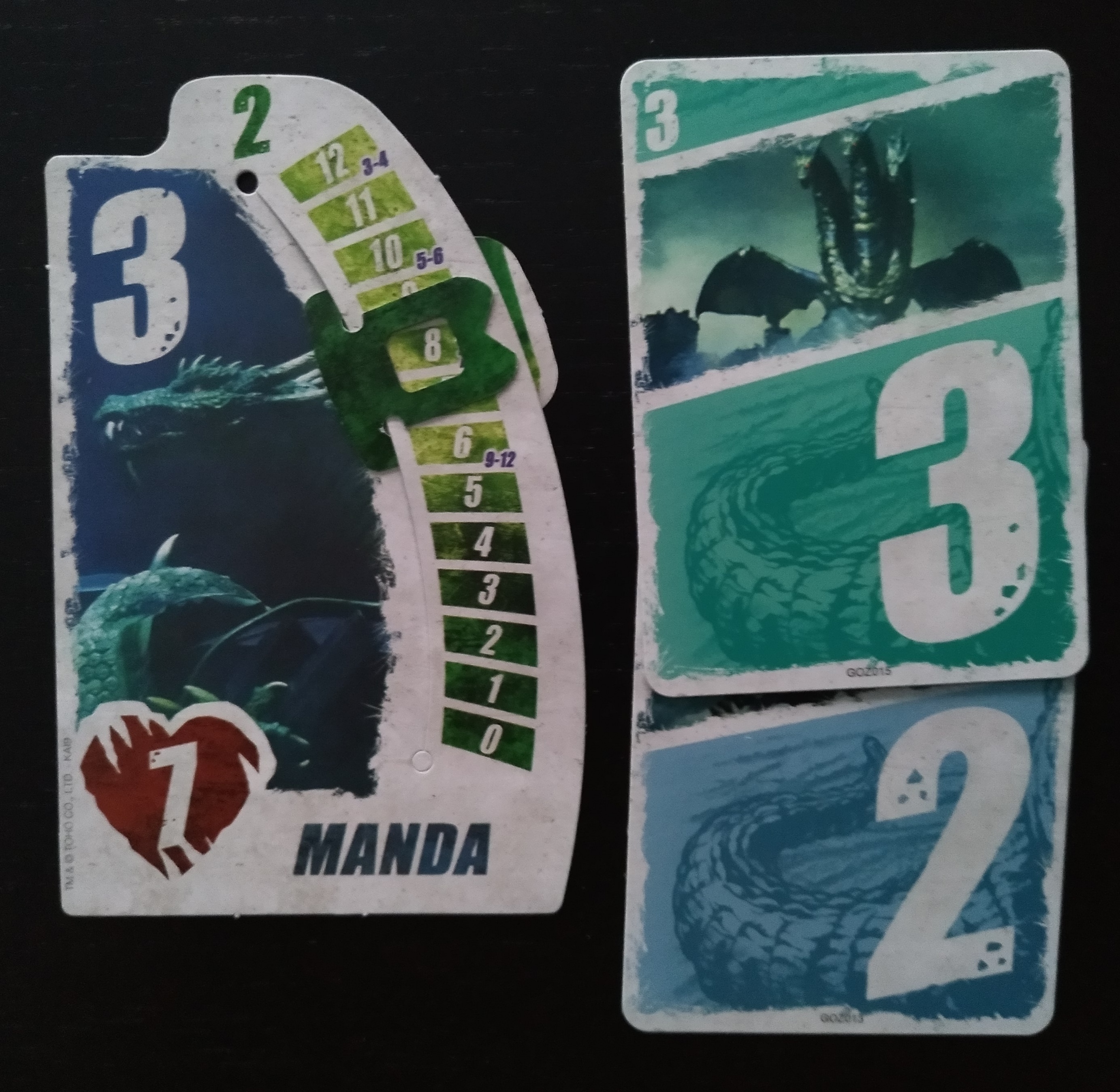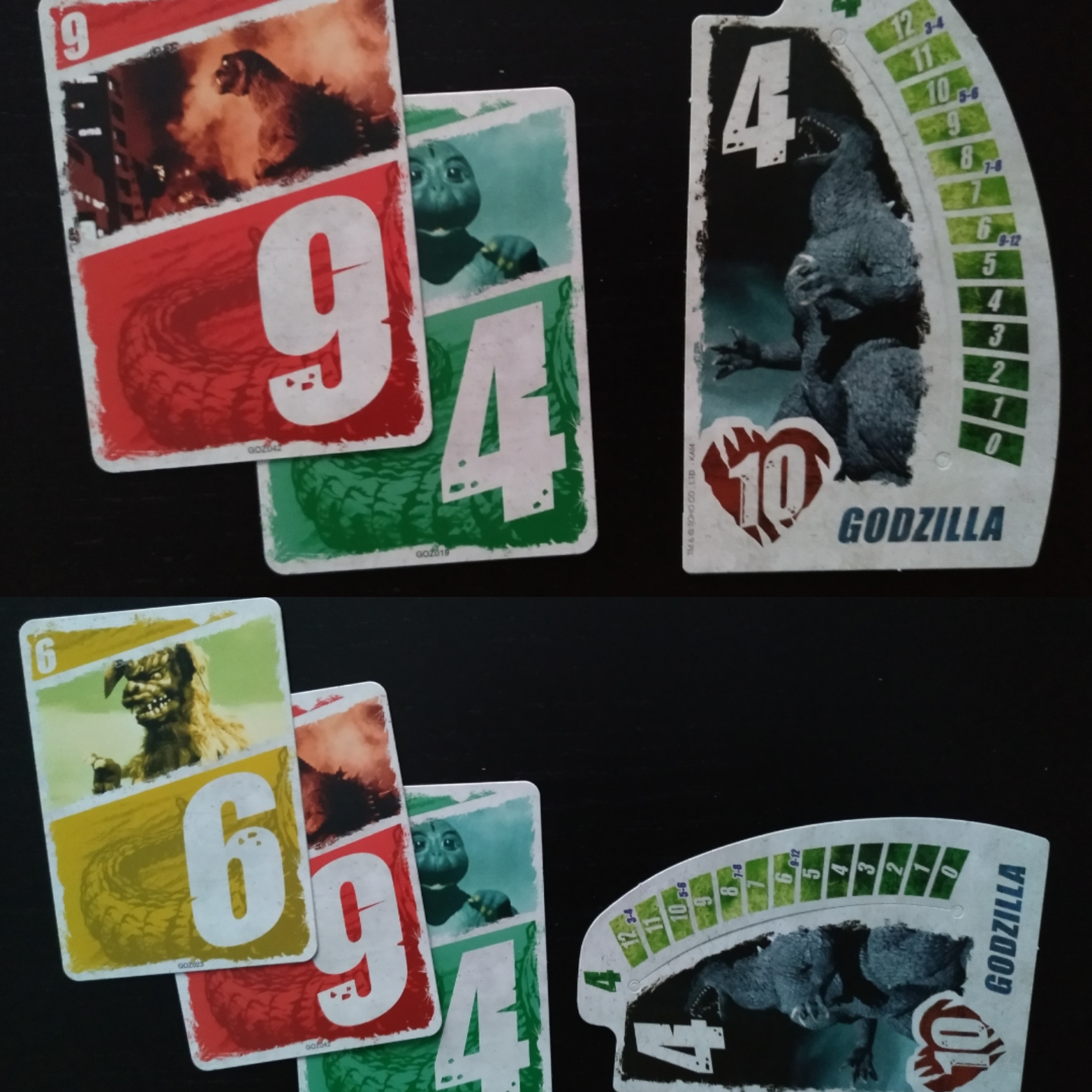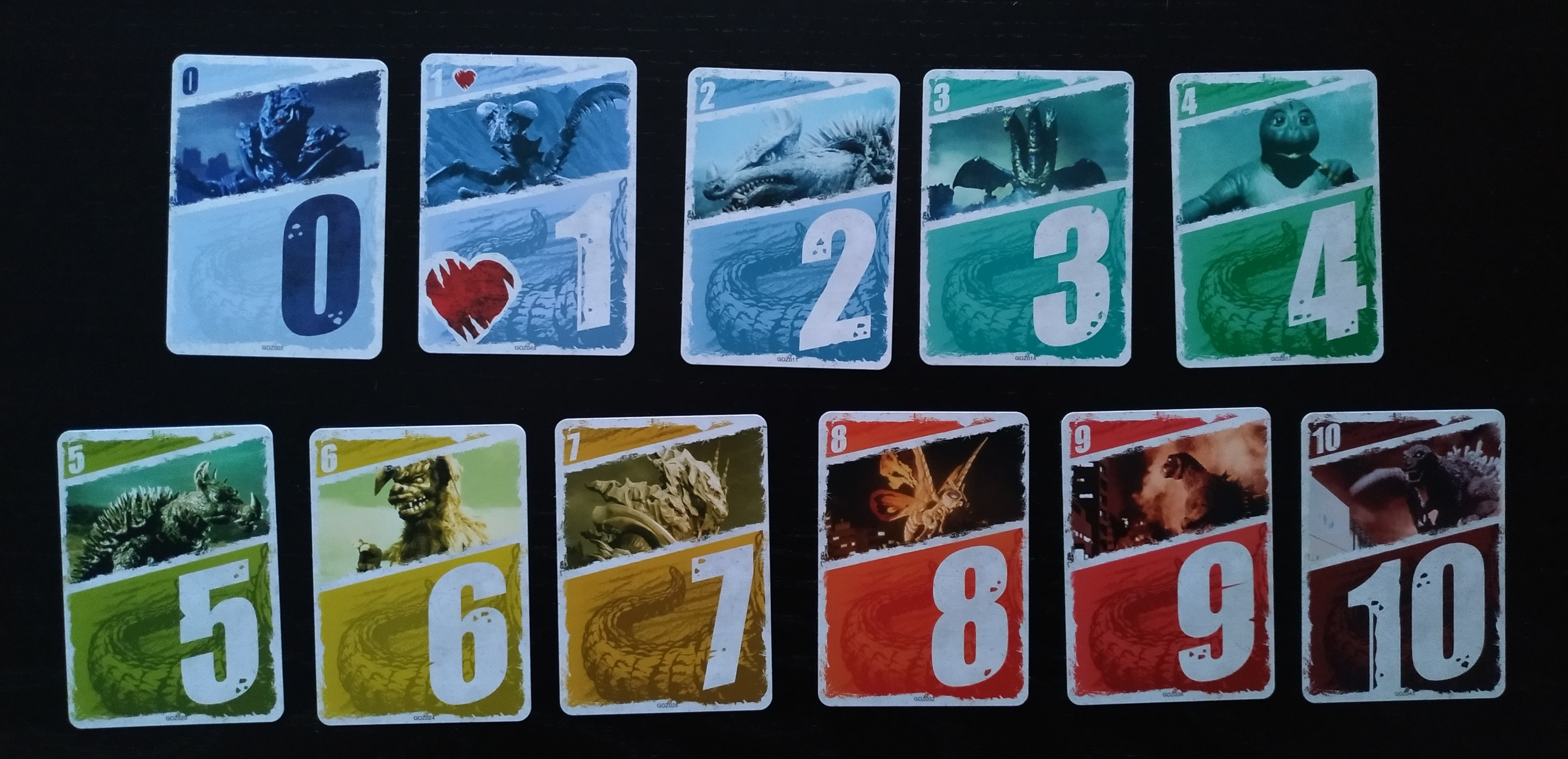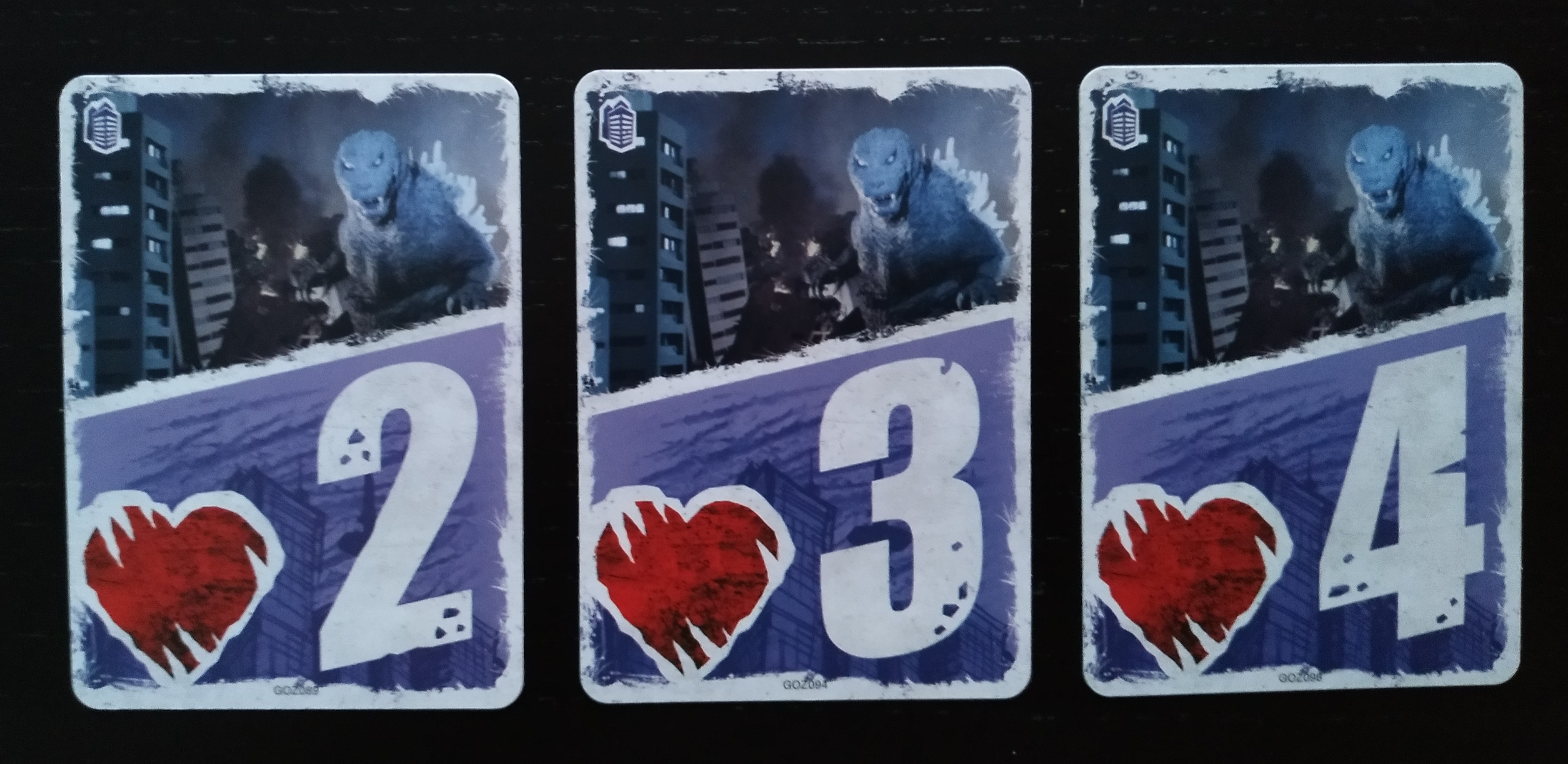 - Doble herida: Esta carta no se puede responder con nada. Solo hay una carta de este tipo en la baraja y el Kaiju que deba contestar debe detener la ronda y ponerse una carta de su mano como herida.