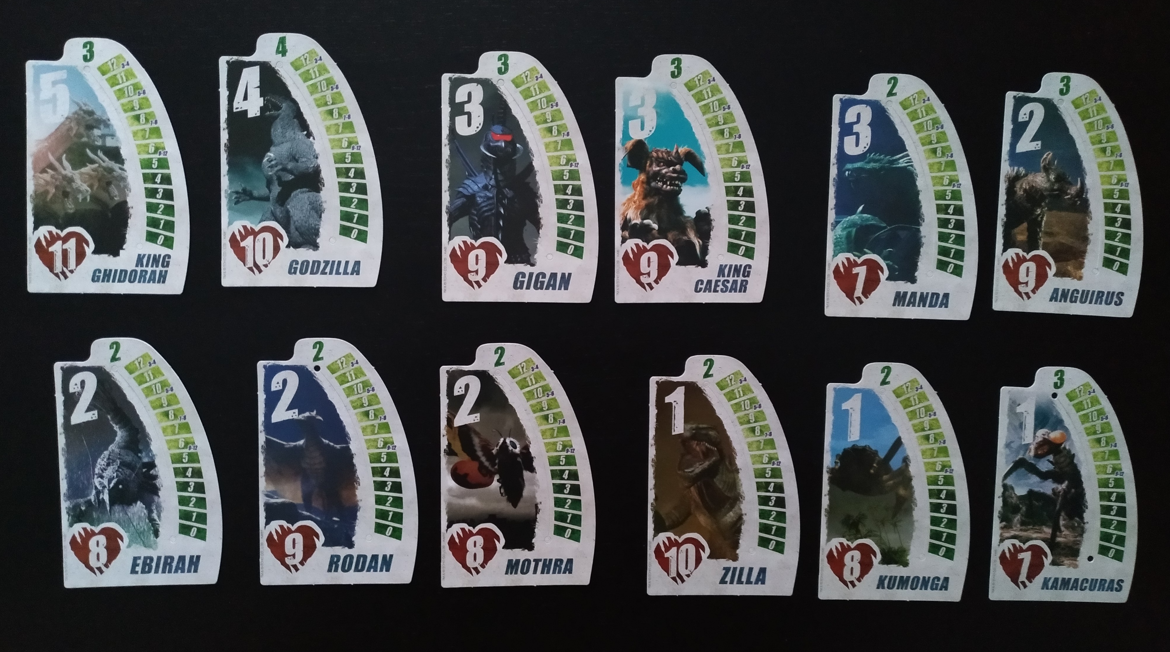 - 12 tarjetas Kaiju con marcadores móviles de puntos