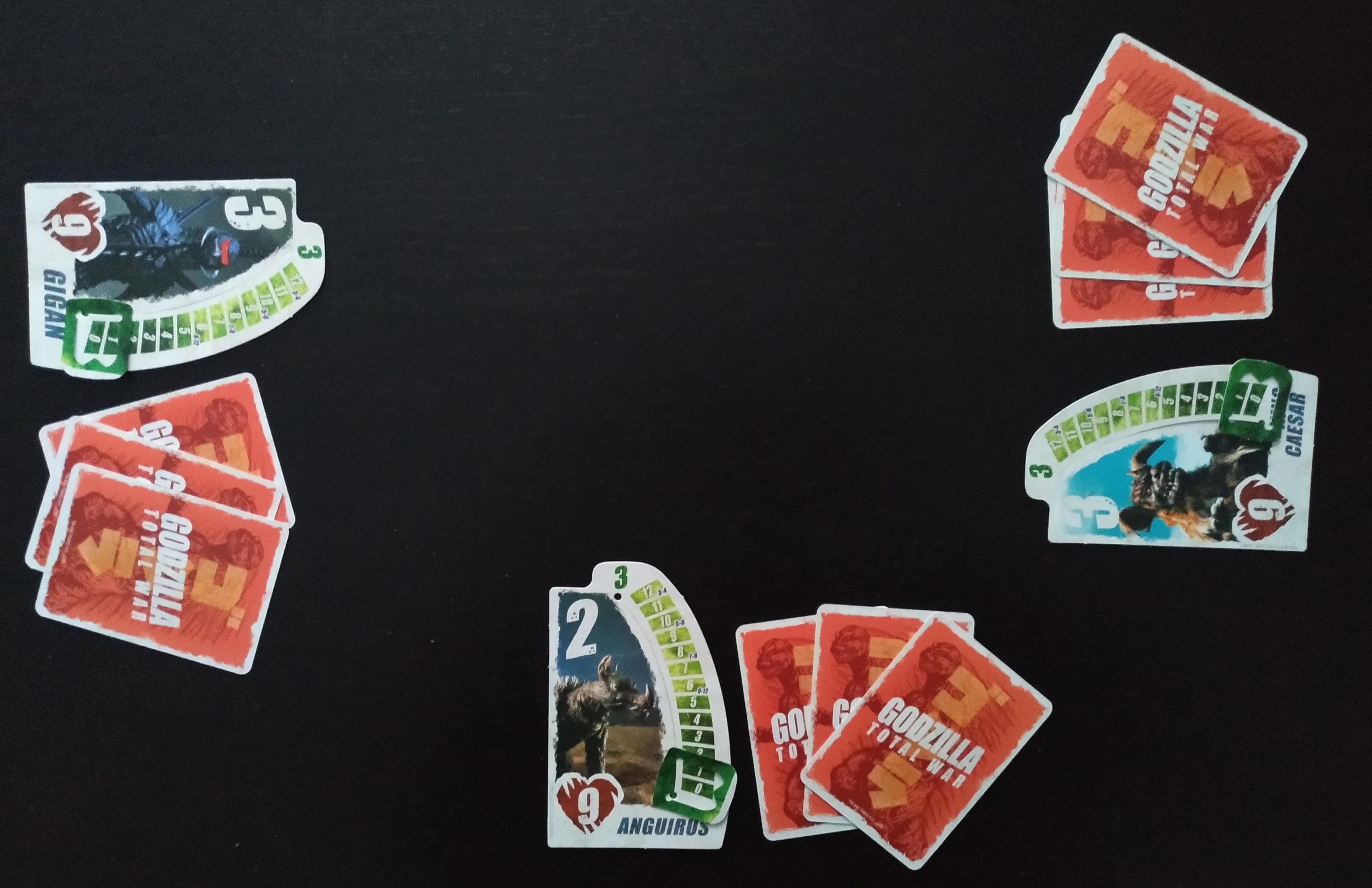 Durante una partida a Godzilla Total War los jugadores se pondrán en la piel del Kaiju que representan y jugaran cartas de su mano que simbolizan los ataques y golpes que se propinan unos a otros.