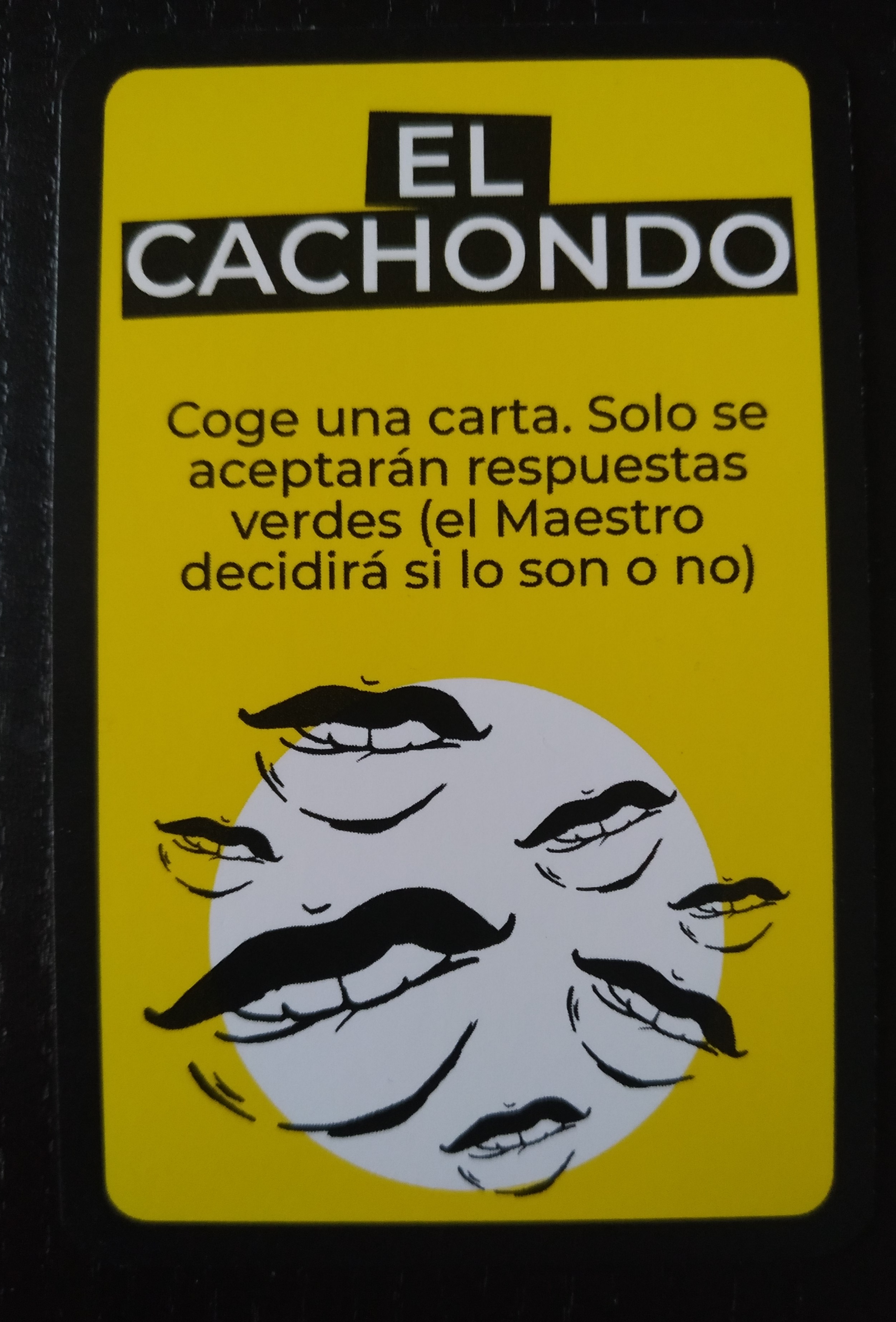 - El cachondo: Cogemos una carta y solo se aceptarán respuestas verdes a la pregunta realizada, las cuáles tiene que dar por válidas el Maestro.