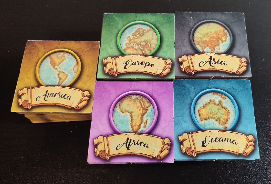 Antes de empezar, cada jugador elegirá un color y una loseta de investigadora a la que representará y colocará su meeple en el tablero en el campamento A del continente que indique dicha loseta.