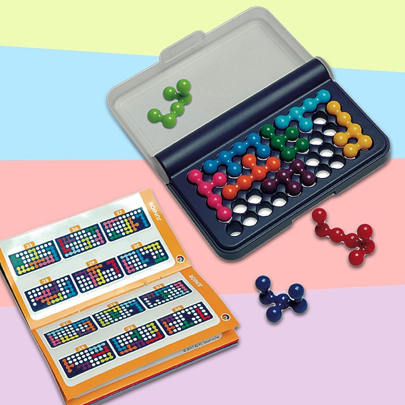 Uno de esos juegos de mesa didácticos de lógica a través de piezas con extrañas figuras, en el que el objetivo es combinarlas del mejor modo. Para ello, Qwirkle requerirá una dosis de paciencia y estrategia, así como afianzar conocimientos sobre formas, colores, matemáticas y resolución de problemas. Sus 108 fichas, de madera, ofrecen una cantidad de posibilidades tal que aportarán diversión para horas. Pensado para entre 2 y 4 jugadores de 6 años en adelante. Deberemos combinar colores y formas, creando líneas de fichas del mismo color (sin repetirlas). ¡Incluso podremos conseguir crear una línea de seis y puntuar un Qwirkle!