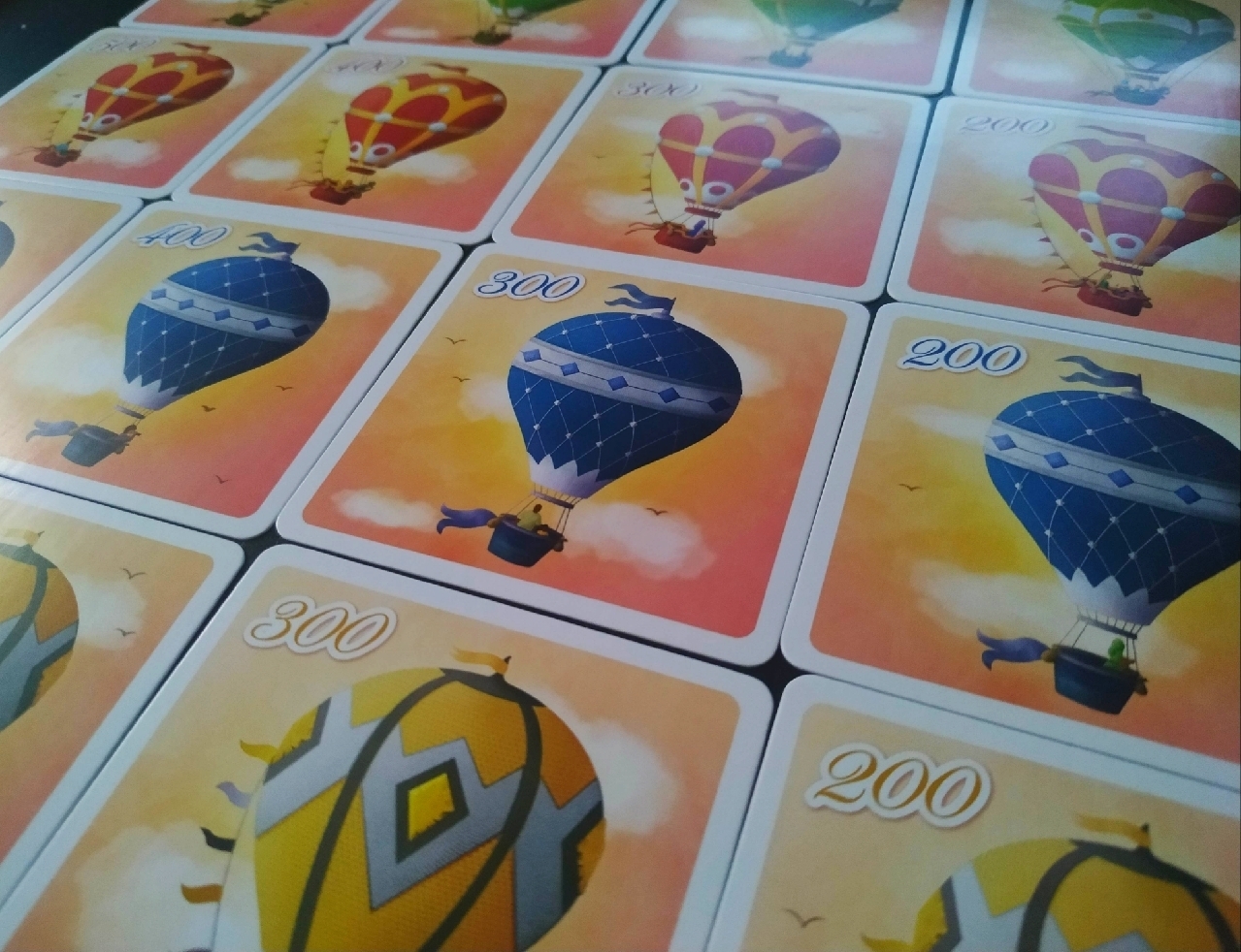 En este juego deberemos recrear ese paisaje entre ambos jugadores colocando globos que pueden estar a diferentes altitudes y, cuando varios del mismo color se agrupen según los números marcados en el suelo, los haremos aterrizar para poder sumarnos los puntos que indica su carta en el recuento final de la partida.