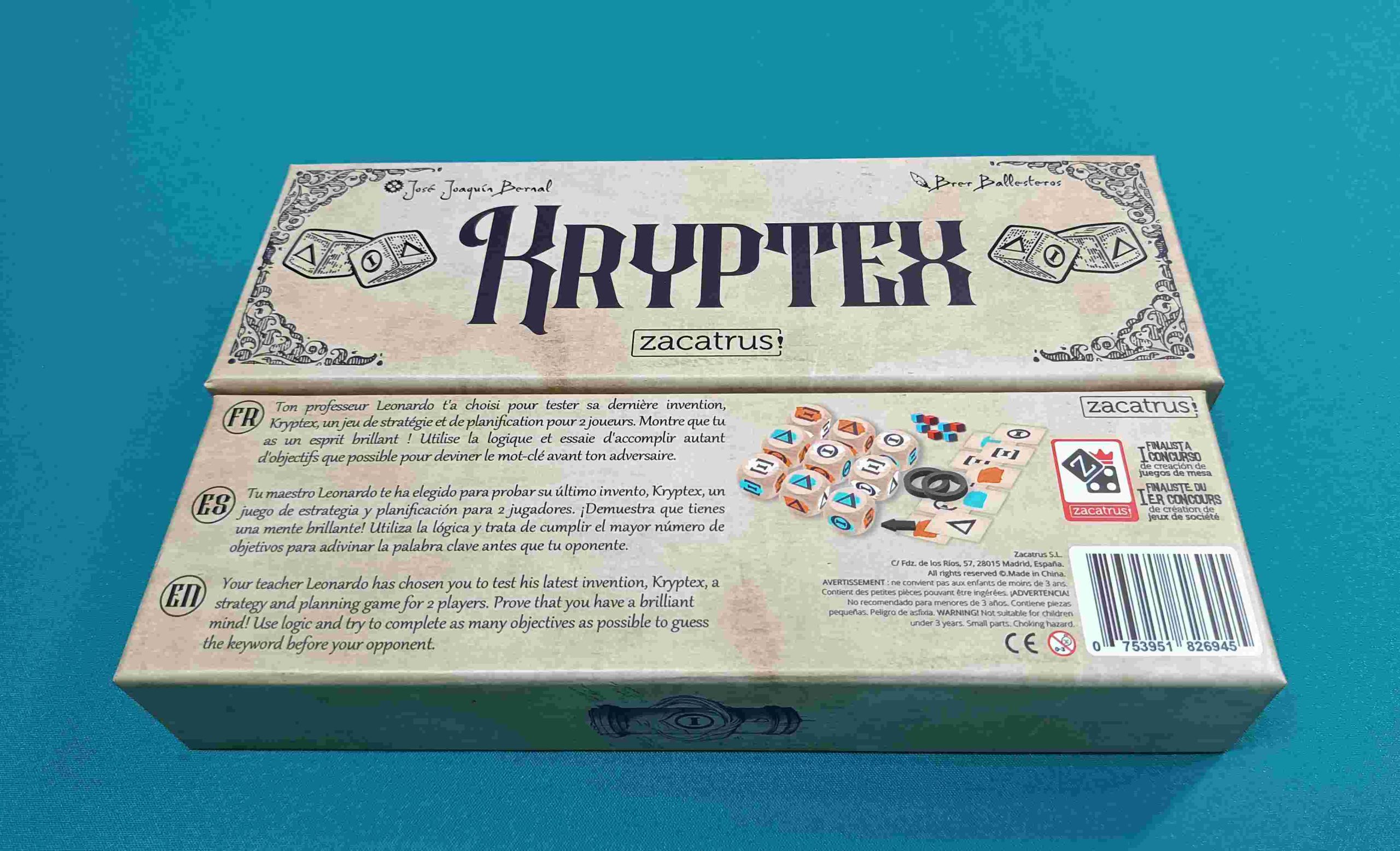 Ya tenemos entre nosotros uno de los juegos finalistas del primer concurso de creación de juegos de mesa Zacatrus que se realizó en el 2023 y uno de nuestros favoritos: Kryptex.