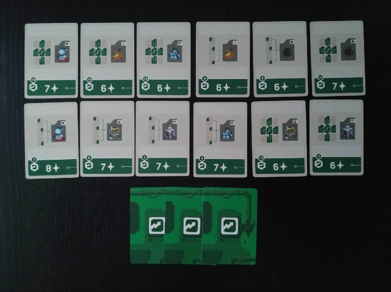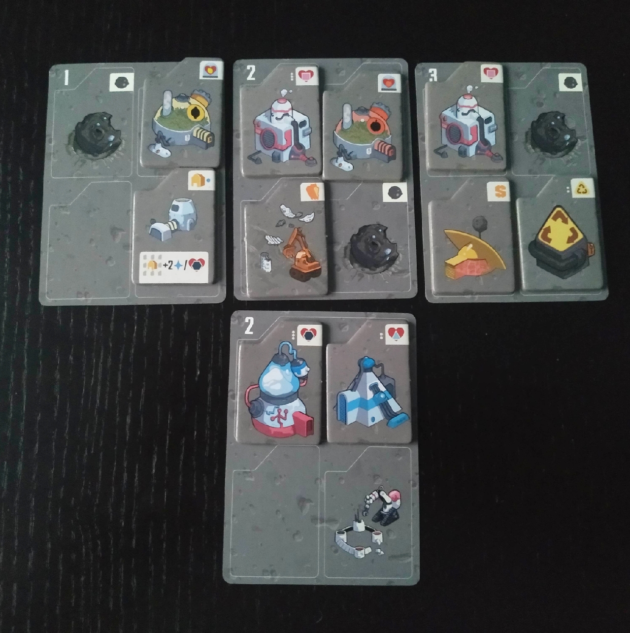 - Robots selenitas: Estos robots permiten saltarse la regla de colocar en orden ascendente las cartas de planos de construcción ya que pueden ser colocados tapando el número de la carta.