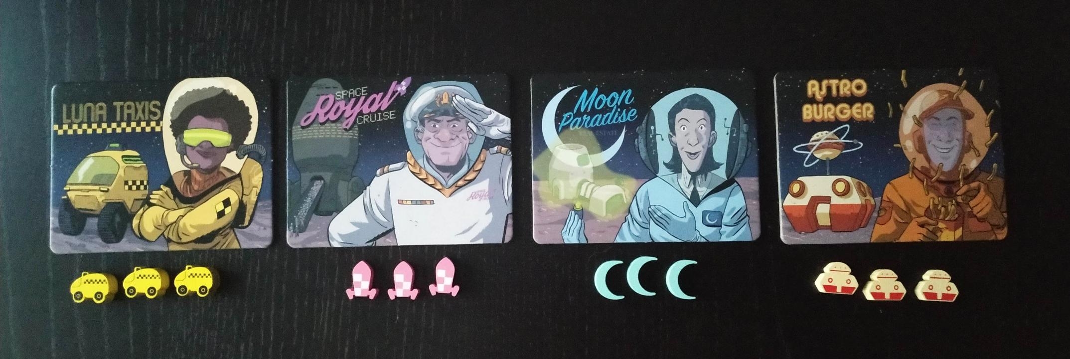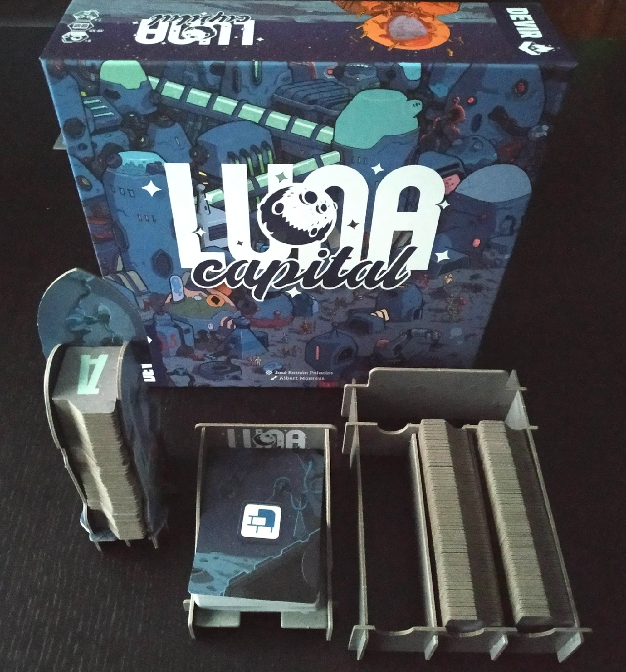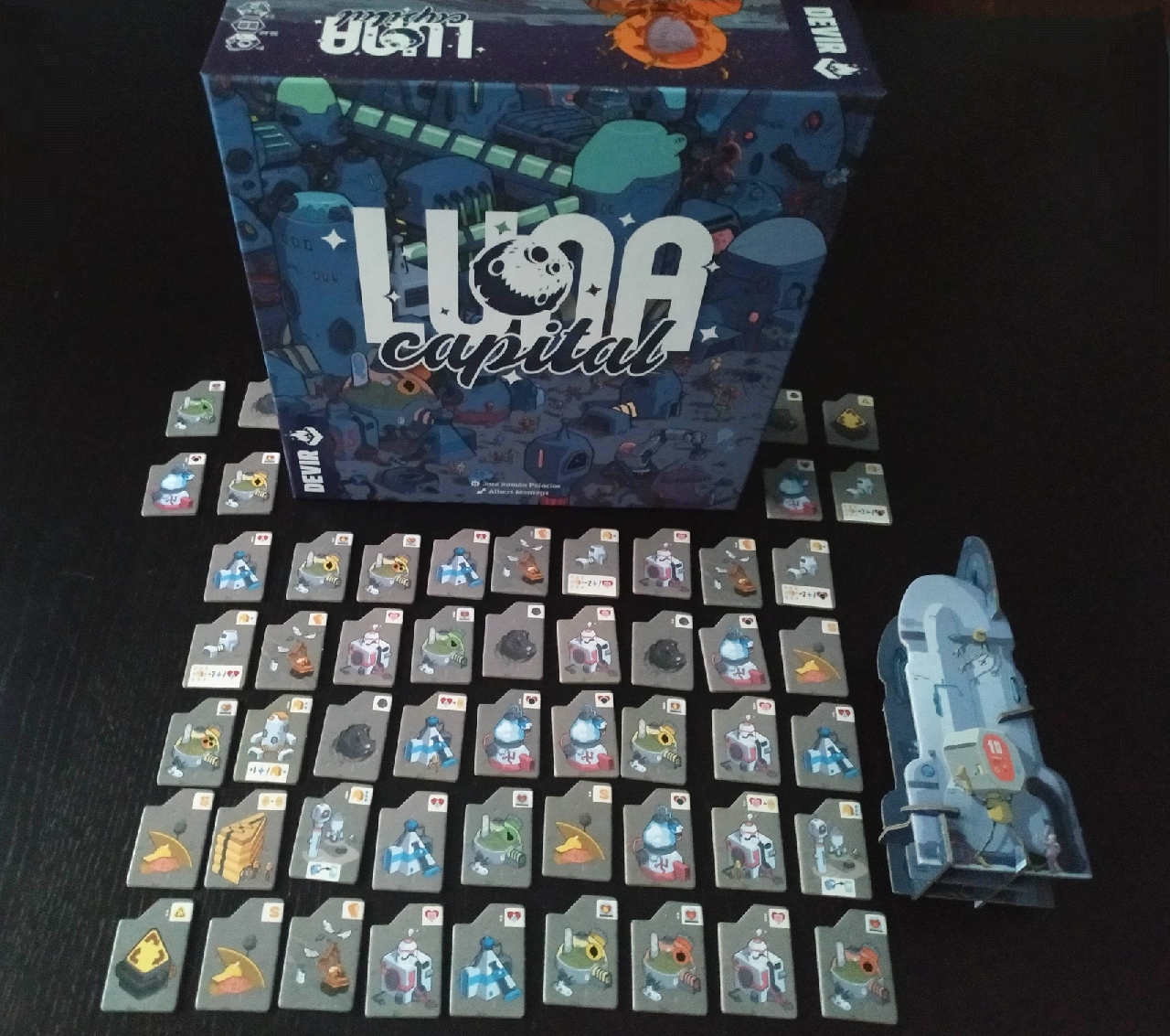Al final de la partida, quién haya sido capaz de aprovechar mejor la colocación de las losetas y la disposición de las cartas, se convertirá en el ganador de Luna Capital.