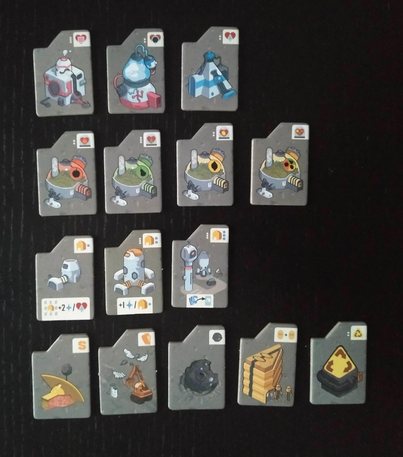 - Losetas especiales: (demolición, redistribución logística, pista de alunizaje ) 2 cada una.