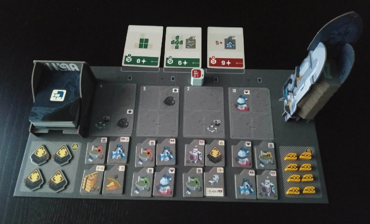 Por un lado tenemos el mercado común de las cartas, donde los jugadores podrán elegir, a veces, en función de los intereses de otros jugadores. Por otro lado, tenemos los objetivos de puntuación, las llamadas concesiones, por las que tendremos que luchar contra nuestros rivales para ver quiénes las consiguen antes. Y por último, tenemos la lucha que existe por ver quién es el jugador con más meteoritos en su asentamiento que otorgarán puntos extra.