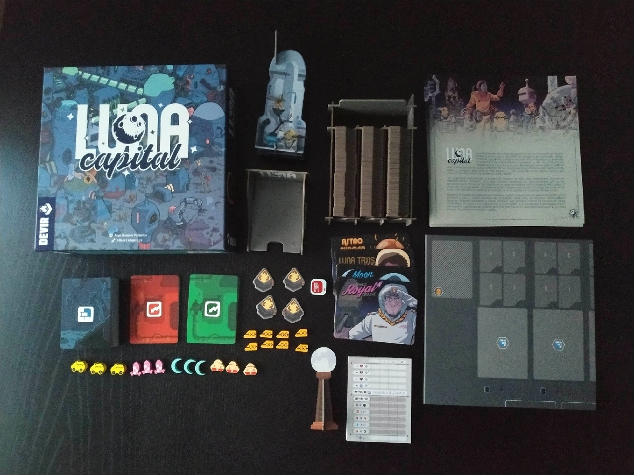 Con respecto a su estética y componentes debemos decir que las producciones de Devir siempre están a la altura y con Luna Capital siguen confirmando que muy pocas editoriales son las que pueden jugar en su liga.