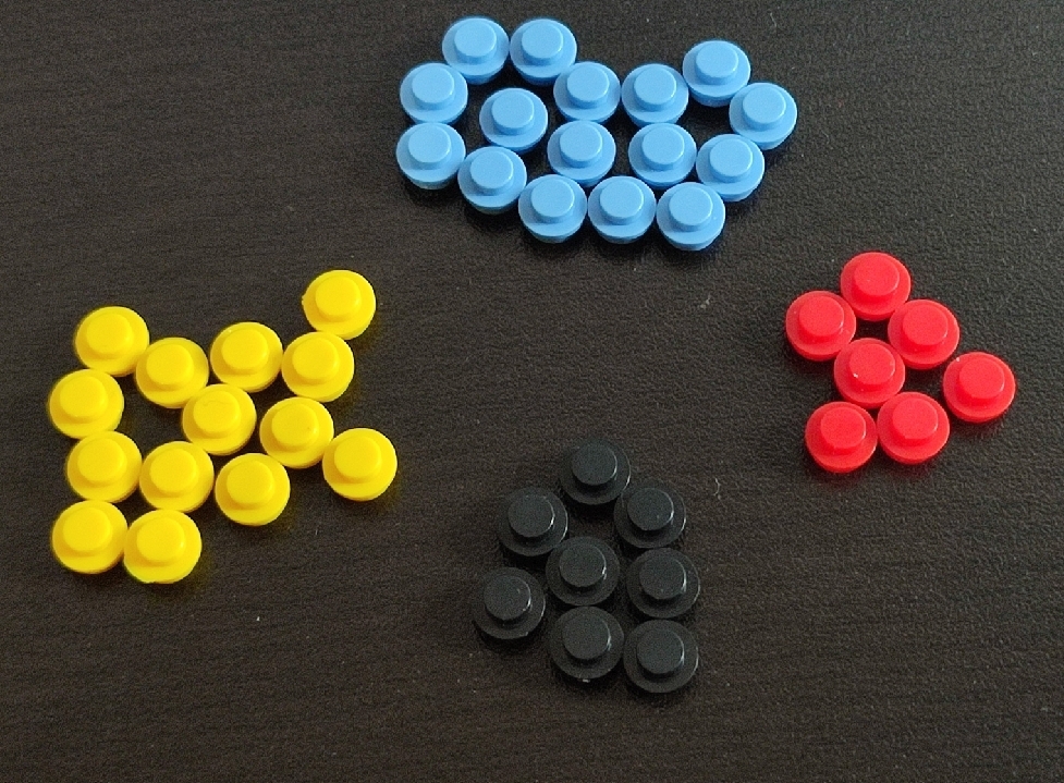- En función del número de jugadores, colocad de forma aleatoria el siguiente número de fichas de cada tipo, teniendo en cuenta que las fichas azules representan a los Mad2go y pueden colocarse donde se quieran y las fichas amarillas representan a las bicis que solo podrán colocarse en las estaciones habilitadas con el símbolo de bici: