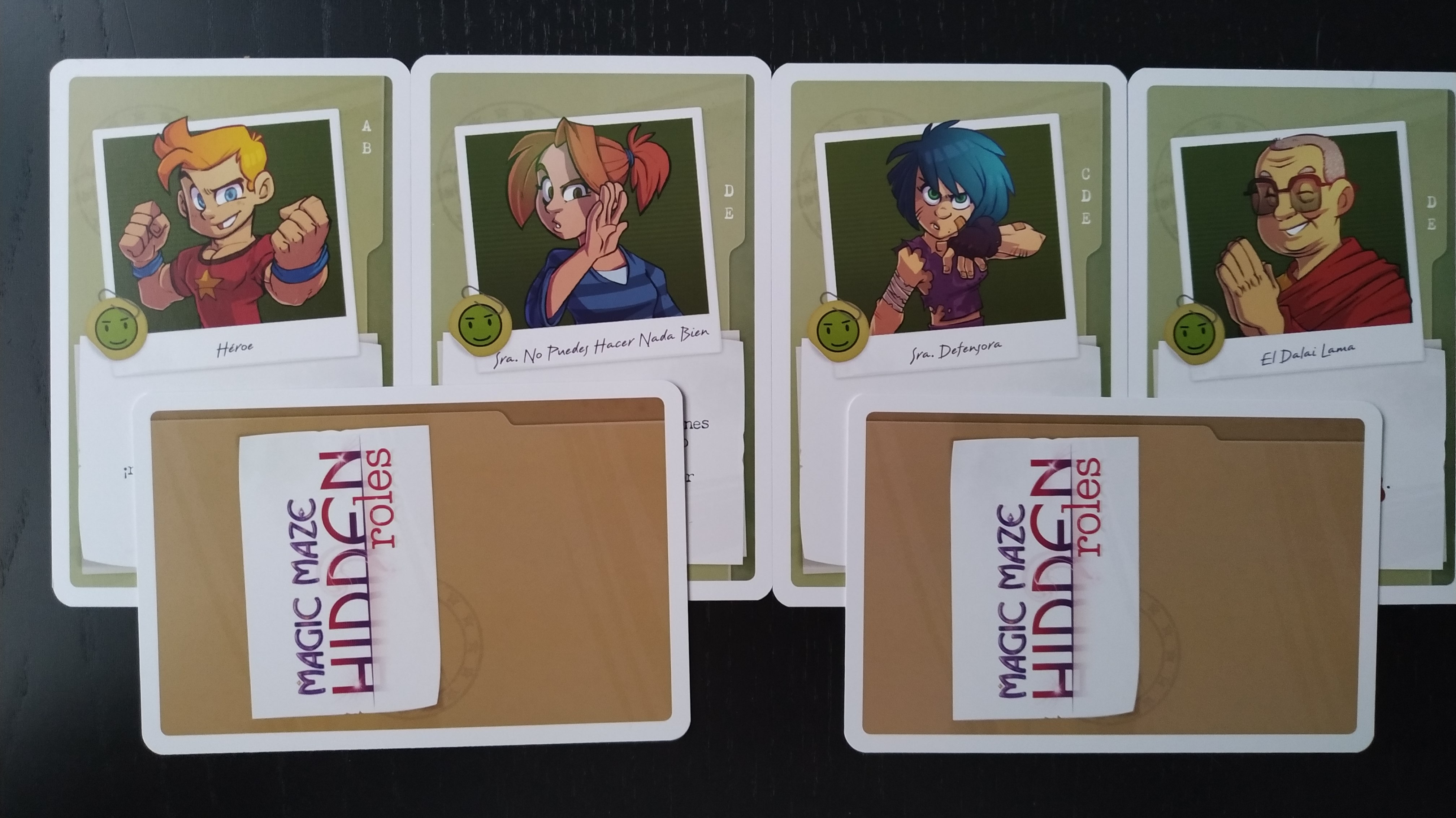 Para los modos avanzados, del 2 al 5, las 42 cartas restantes son distintas entre sí, con distintas ilustraciones y distintos roles cada una de ellas.