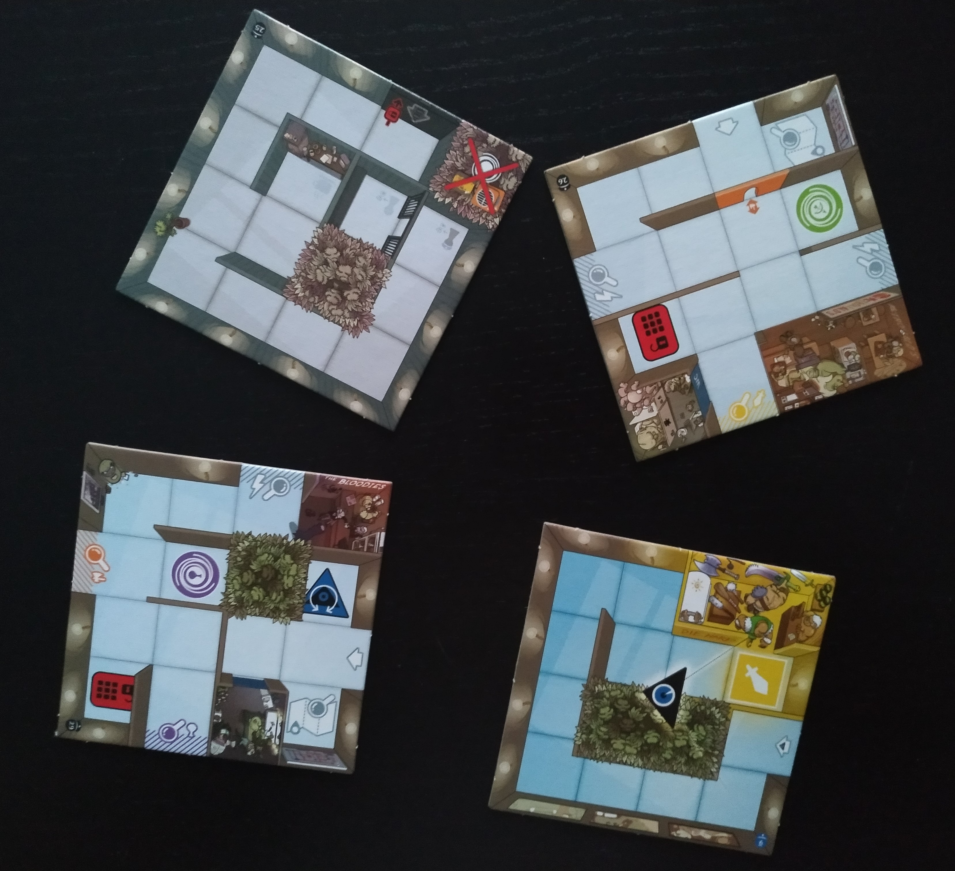 Cuando preparemos el juego, tenemos que sustituir las losetas 2, 10 y 11 por losetas de esta expansión y, por cada una de ellas se coloca un peón de guardia sobre la loseta de robo.