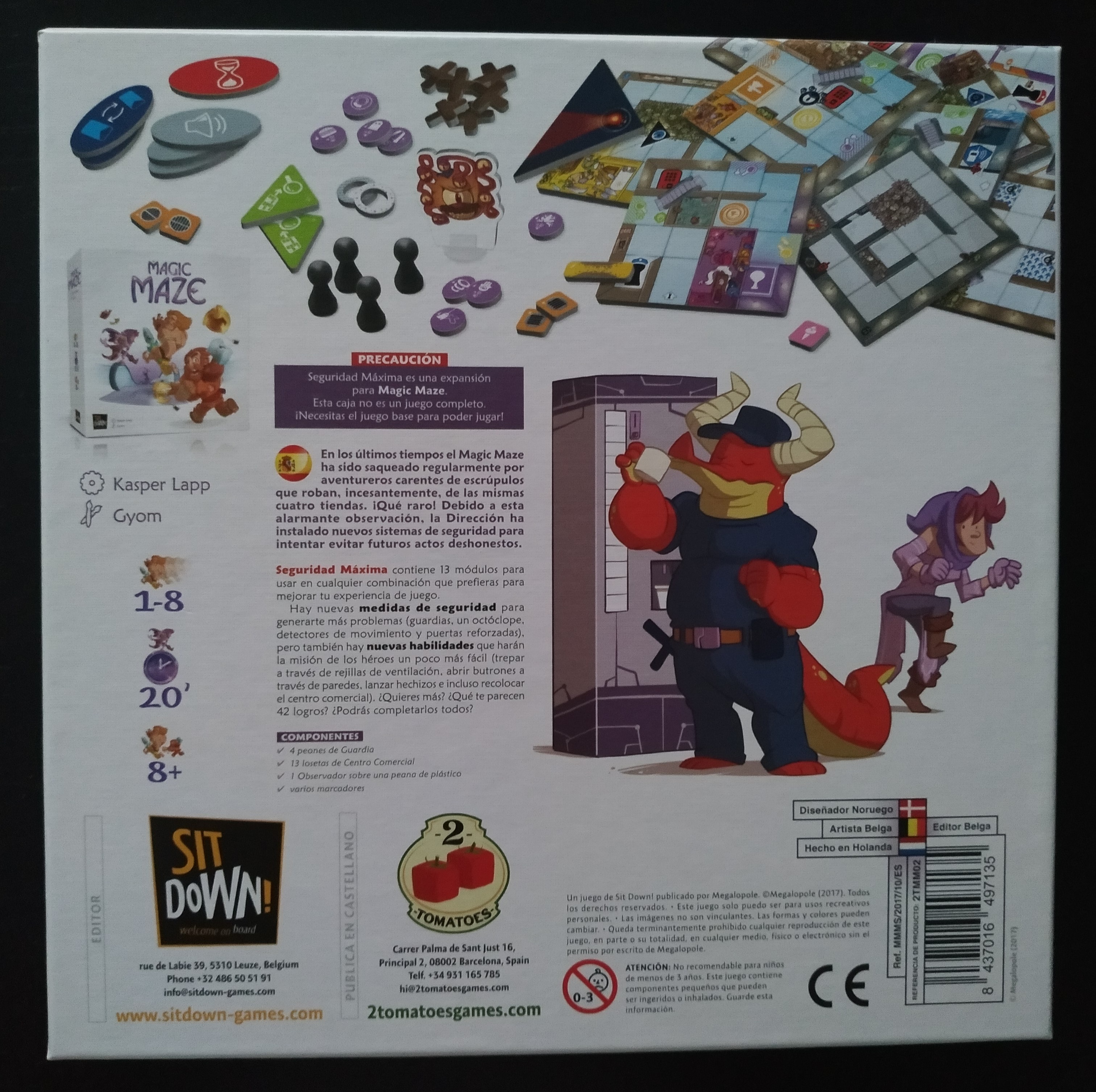 Magic Maze: Seguridad Máxima es la primera expansión del nominado al Spiel des Jahres 2017 que precisa de la caja base para poder disfrutarse pero que consigue dar más profundidad a este juego que tanto nos gusta. Publicado en España por 2tomatoes, creado por Kasper Lapp e ilustrado por el belga Gyom.