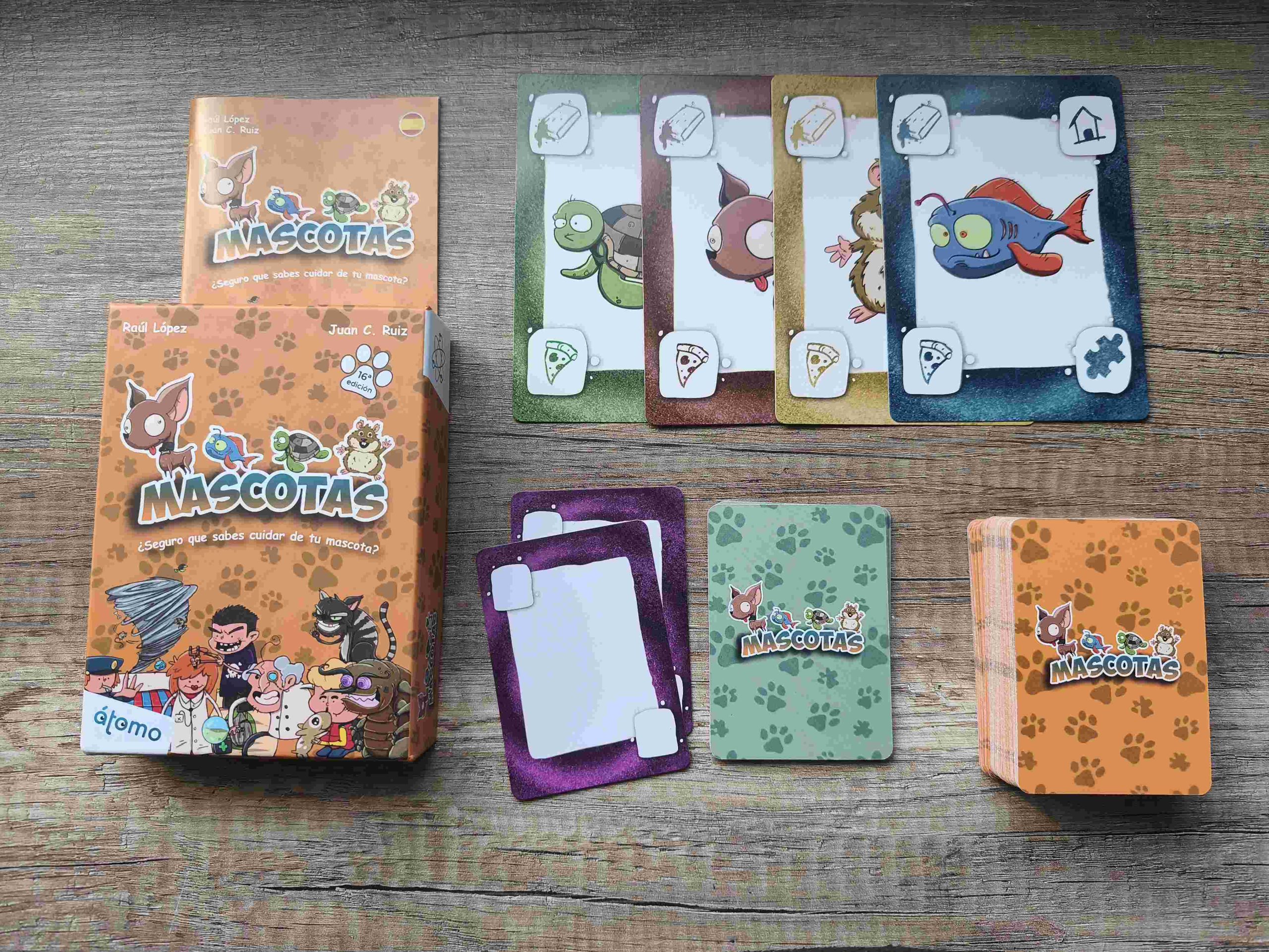 Mascotas es un juego de mesa de cartas divertido y muy dinámico, ideal para jugar en familia o con amigos. Nuestro objetivo es cuidar a una mascota, de entre las cuatro posibles, y nos tendremos que asegurar de que reciba todos los cuidados necesarios: aseo, casa, comida y juego. Es un juego que combina estrategia, interacción y un poco de suerte, lo que lo hace atractivo para jugadores de diferentes edades.