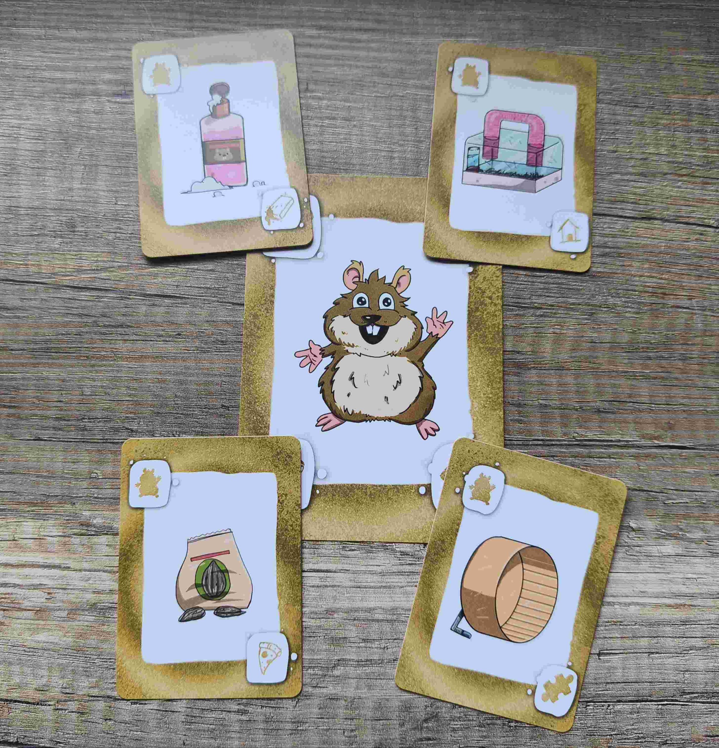 Si pasamos ya comentar cómo jugar, ya hemos visto que la preparación es muy sencilla y rápida. Mezclaremos las cartas de mascota objetivo y se repartirá una de manera oculta a cada jugador. Las cartas grandes de mascota (perro, tortuga, pez y hámster) se colocan en el centro de la mesa, y cada jugador robará cuatro cartas del mazo. Esta fase inicial es muy accesible, lo que permite que incluso los más pequeños se integren sin complicaciones.