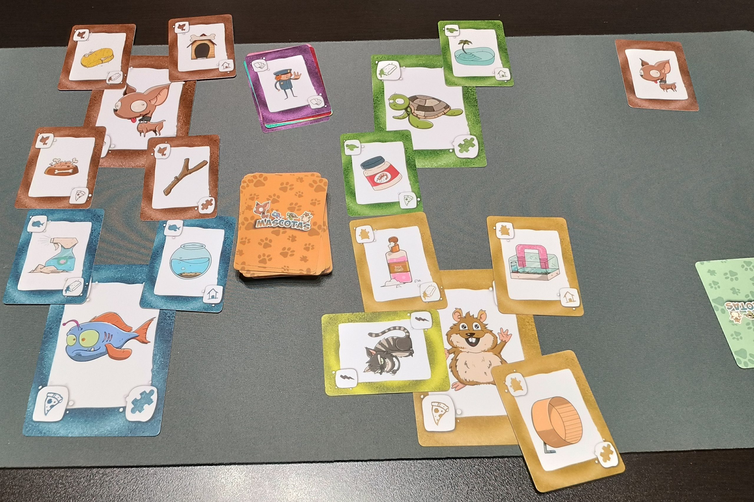 Iremos colocando cartas, preferentemente sobre la mascota que tenemos que cuidar pero o no siempre tendremos cartas de dicha mascota o habrá que colocar sobre otras para poder disimular un poco y que no sea tan evidente cuál es nuestra favorita. Esto fomenta la interacción, ya que los jugadores deben estar atentos a las cartas que se juegan y a intuir cuáles pueden ser las mascotas de los demás.