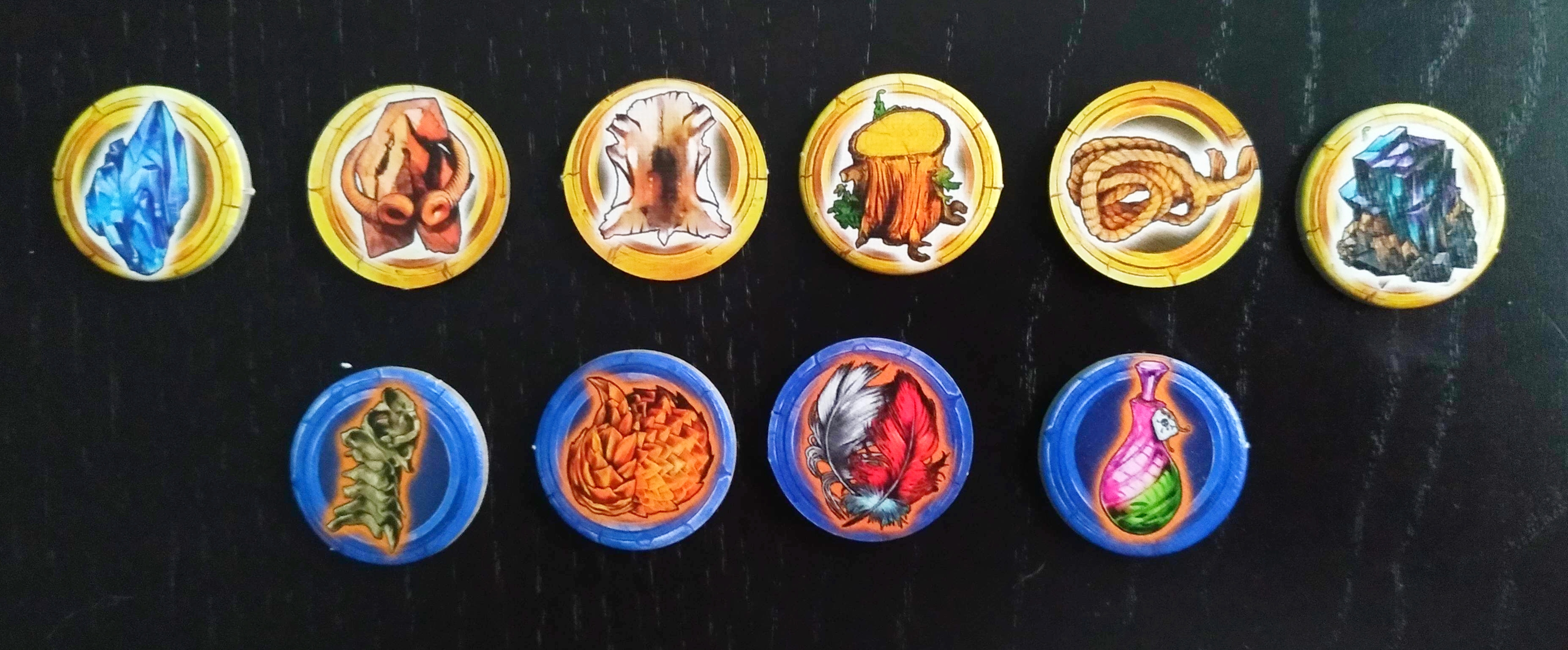 - 82 fichas (15 de vida, 58 de recursos, 5 de botas y 4 de habilidad de Gran Invocador)