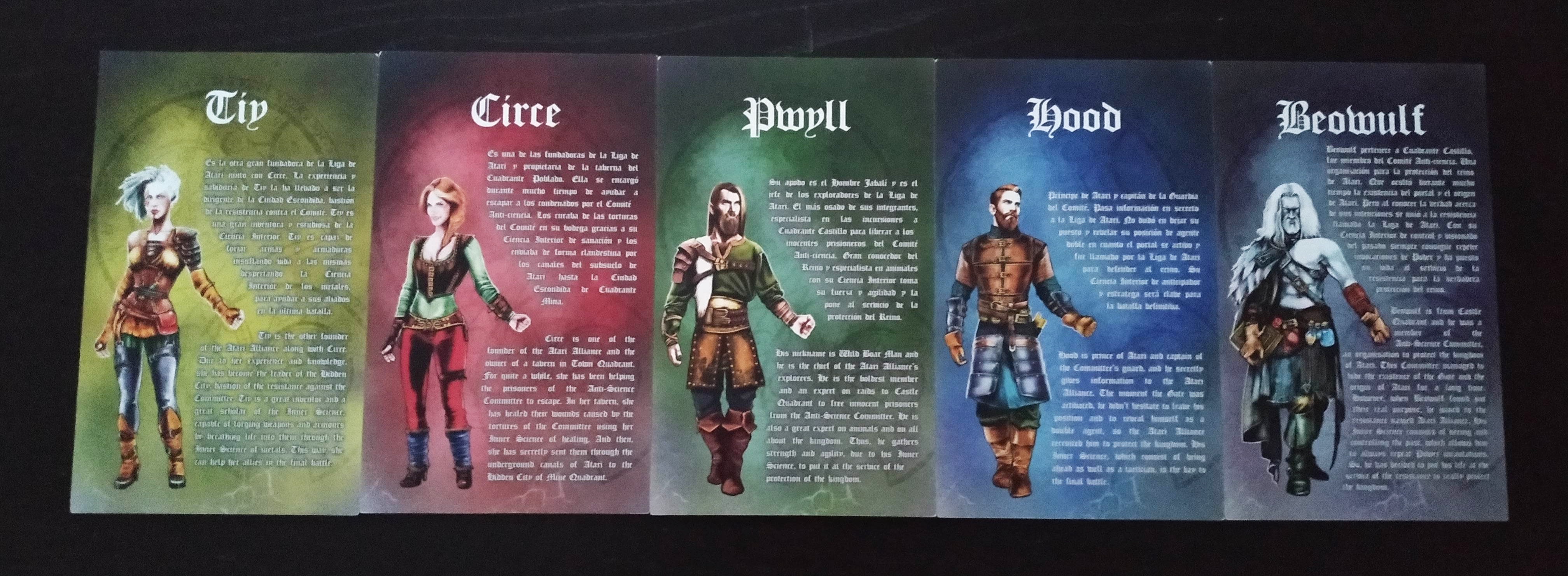 Sin duda, una de las cosas que más despunta del juego es su temática y ambientación. Es verdad que la lucha entre el bien y el mal es muy recurrente en películas, series y juegos, pero para este se ha creado una ambientación totalmente original que le dota de luz propia. No solo toda la historia en sí, sino que gracias a que, el objetivo que cada uno de los bandos debe conseguir y que cada personaje tiene su trayectoria, reflejada además detrás de su tablero de personaje, permiten al jugador identificarse y conocer más al personaje. Encima, cada uno de ellos cuenta con armas y armaduras propias que les dota de una personalidad propia y única.