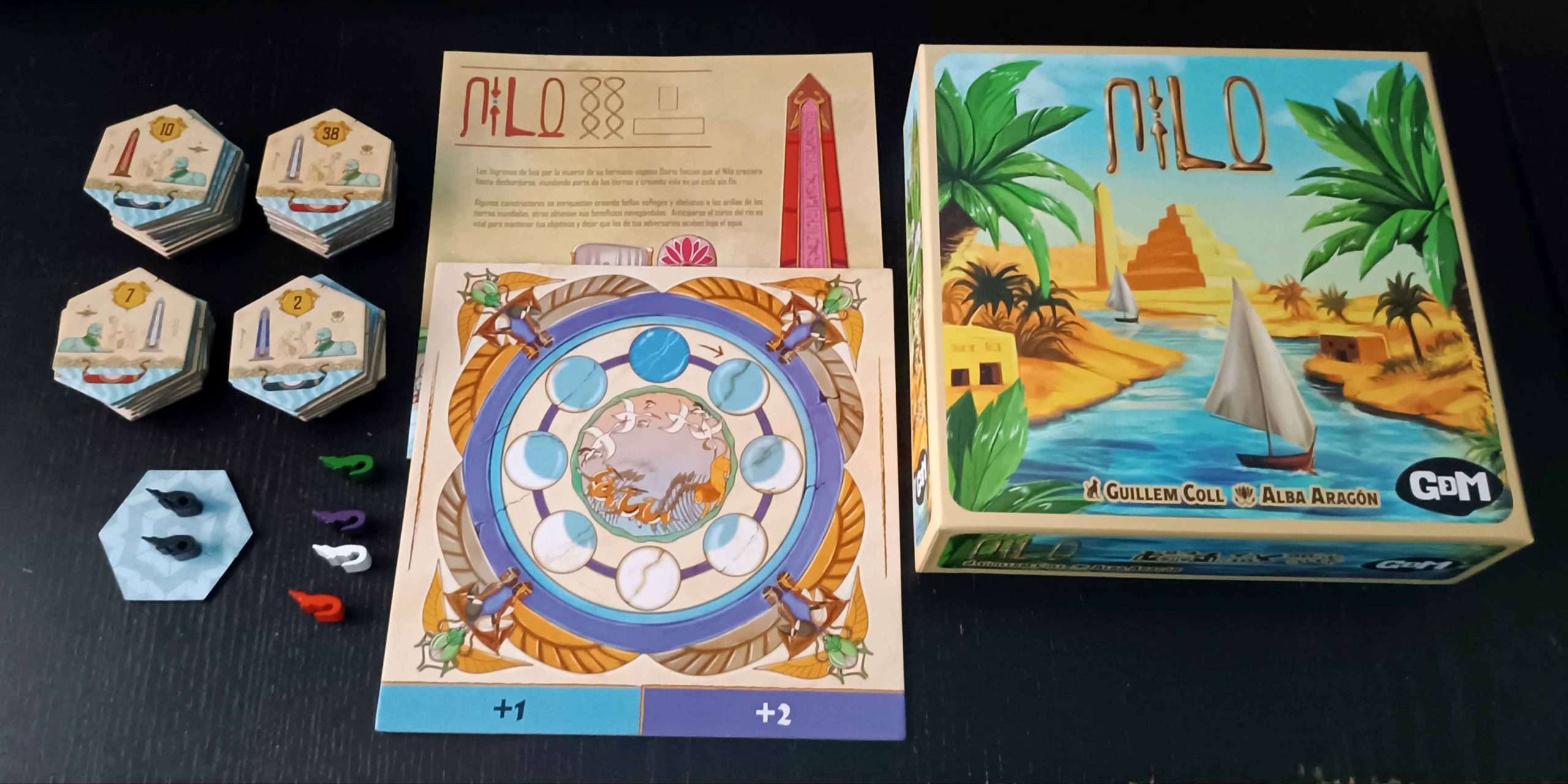 Nilo es un juego de colocación de losetas ambientado en Egipto que nos trae la editorial GDM. El prototipo de este juego fue ganador del VIII Concurso de Protojuegos Verkami Dau Barcelona con el nombre de Amstel.