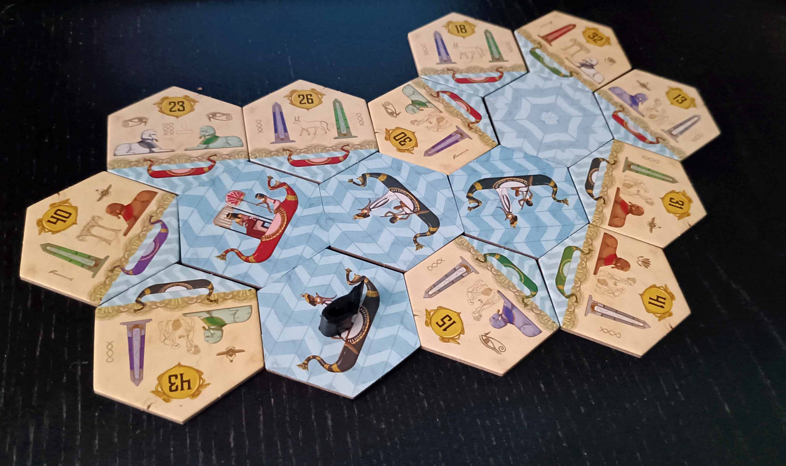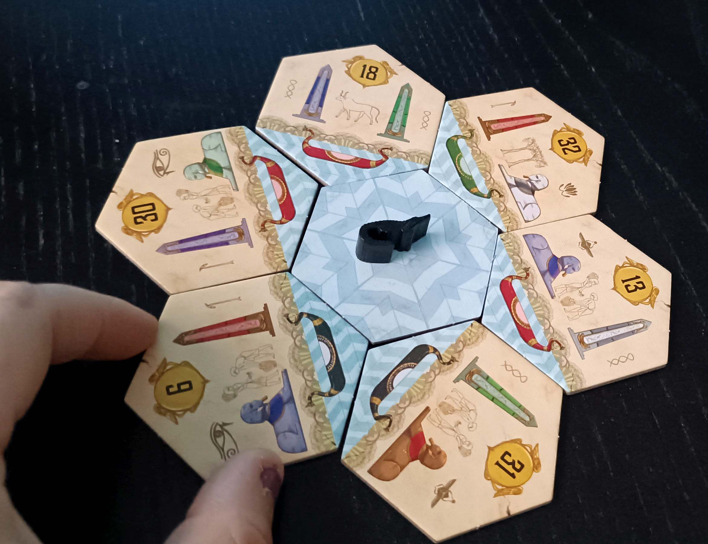 - Obeliscos: 2 puntos por cada loseta adyacente que contenga una esfinge de nuestro color.