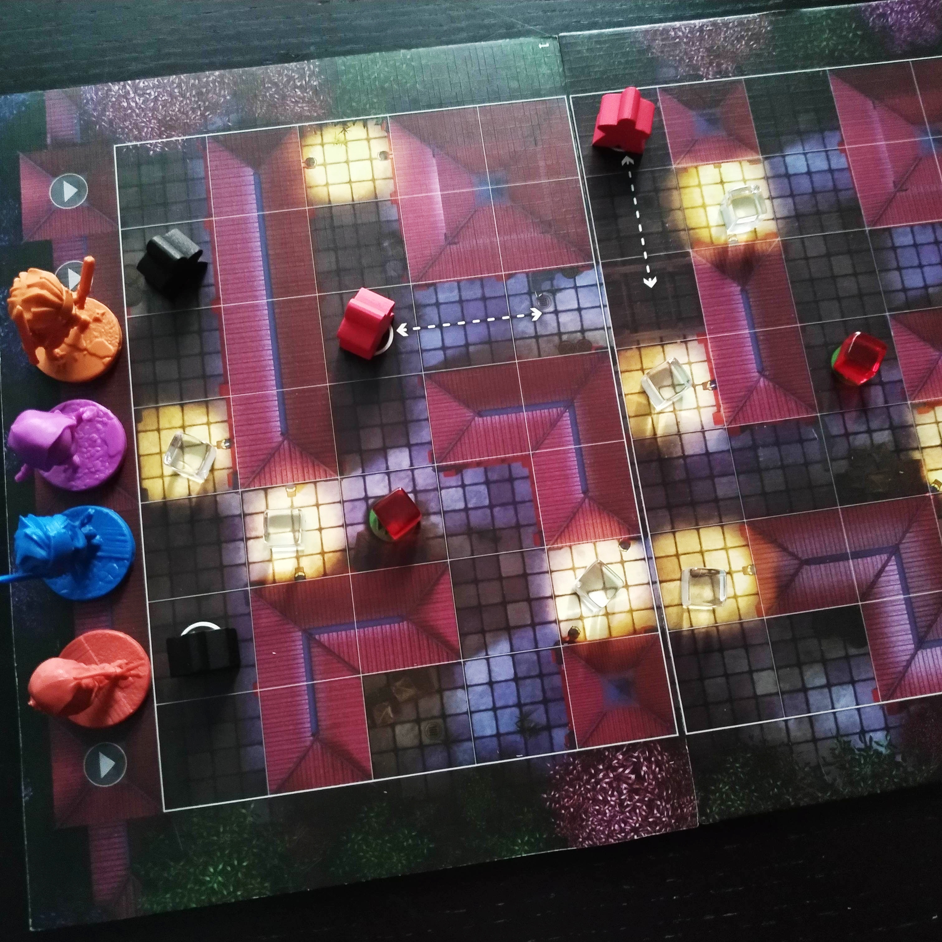Habrá que saber aprovechar que otro ninja ya haya cogido algún cubo de luz transparente porque esa zona ya estará apagada y no tendremos penalización así que si nuestras cartas de movimiento nos permiten ir hacia esa zona, deberemos ser astutos y recorrer ese camino antes que otro.