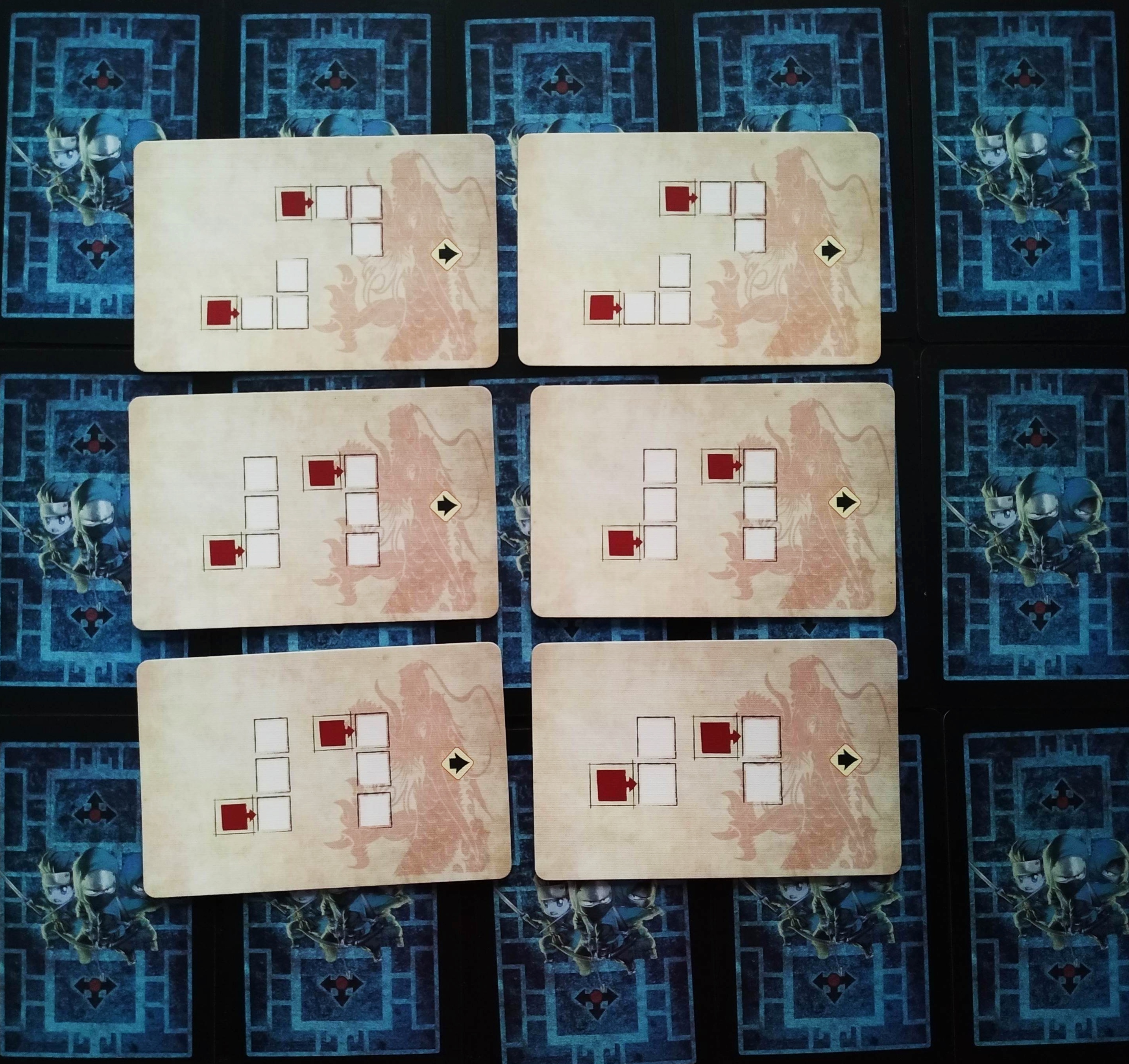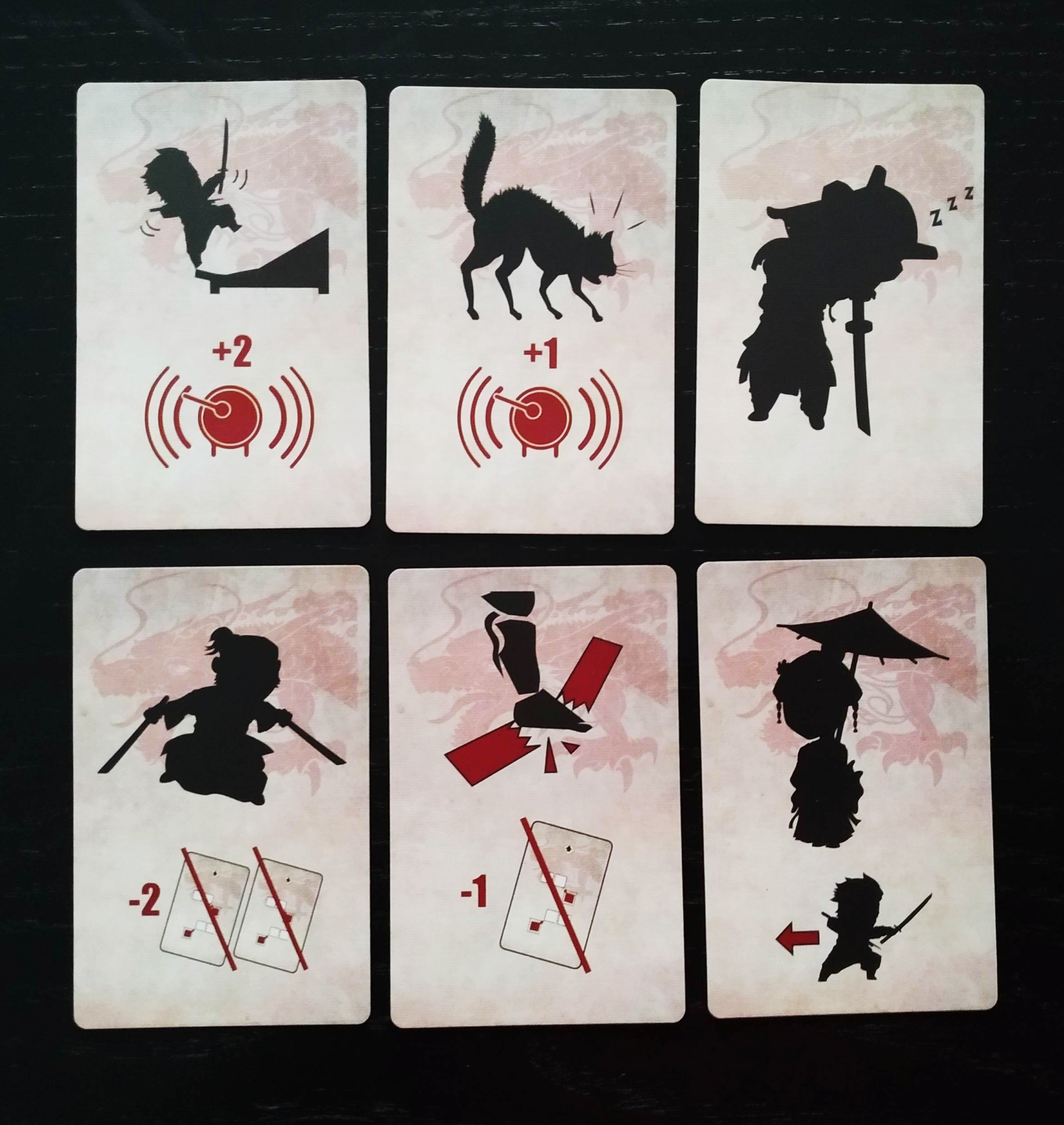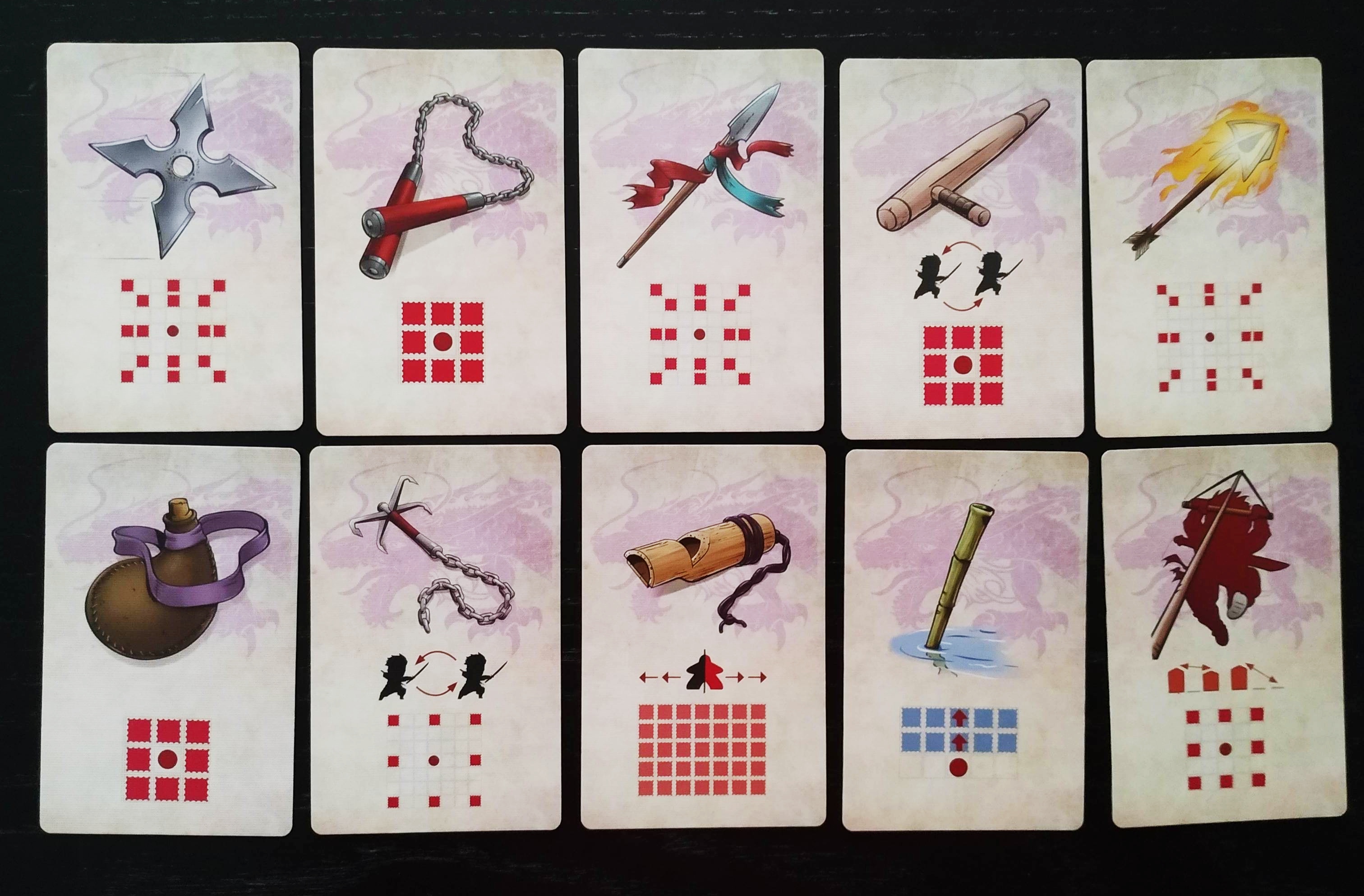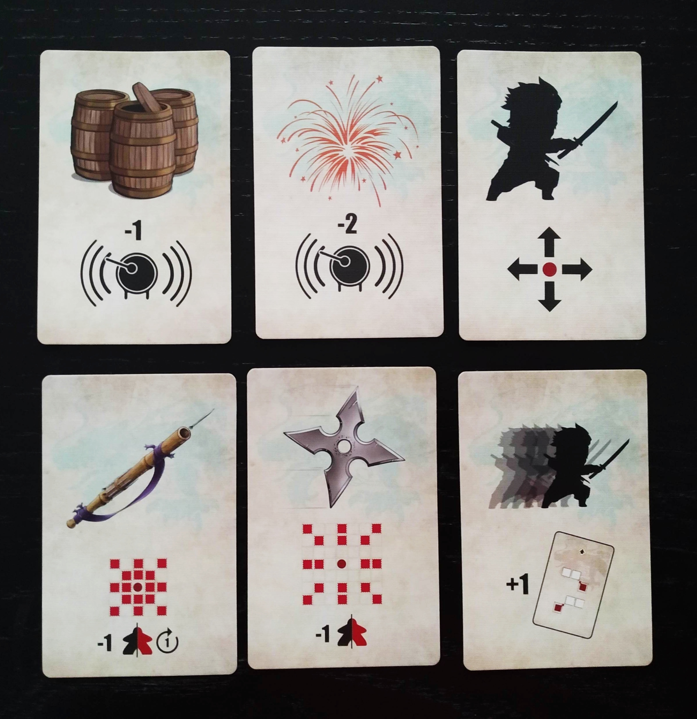 Además, podremos ir variando la posición inicial al comienzo del juego de nuestros ninjas por lo que después, al sumar el azar de las cartas de movimiento, rara vez realizaremos el mismo recorrido ni en la fase cooperativa ni en la competitiva. Los movimientos de los guardias también influyen y el resto de tipos de cartas, también cogidas de un mazo bocabajo, modificarán nuestros movimientos y deberemos planificar los siguientes pasos de nuestro ninja.