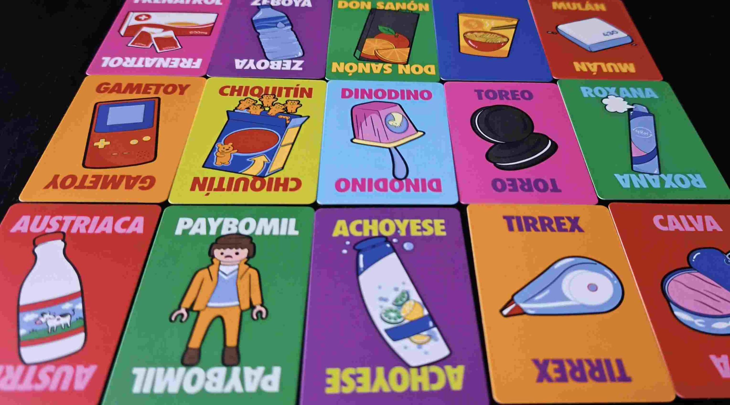 Los jugadores van sacando cartas una a una y deben decir en voz alta el nombre que aparece… pero sin equivocarse ni decir la marca real por inercia. A medida que avanza la partida, la confusión aumenta y los errores son inevitables.