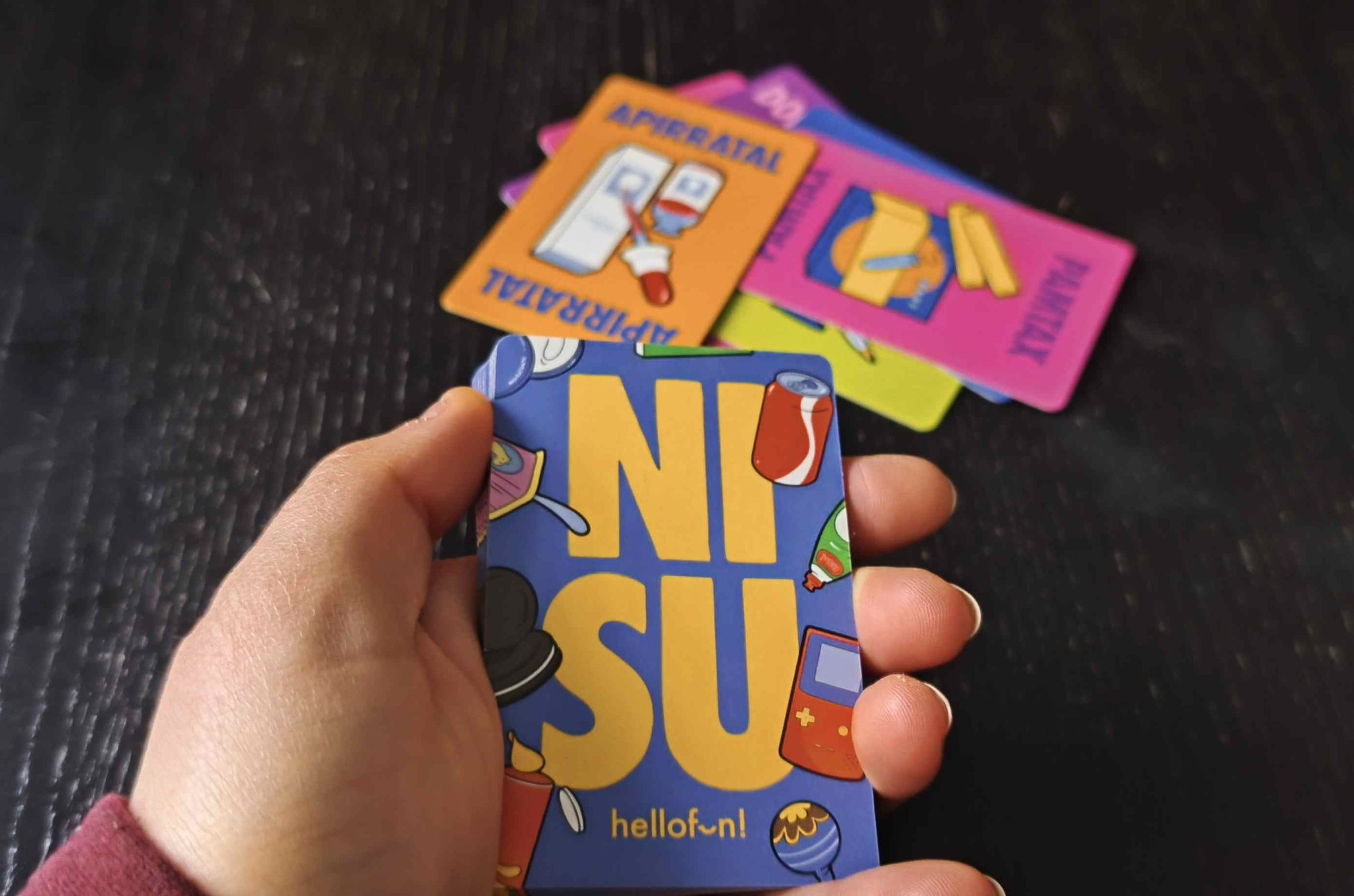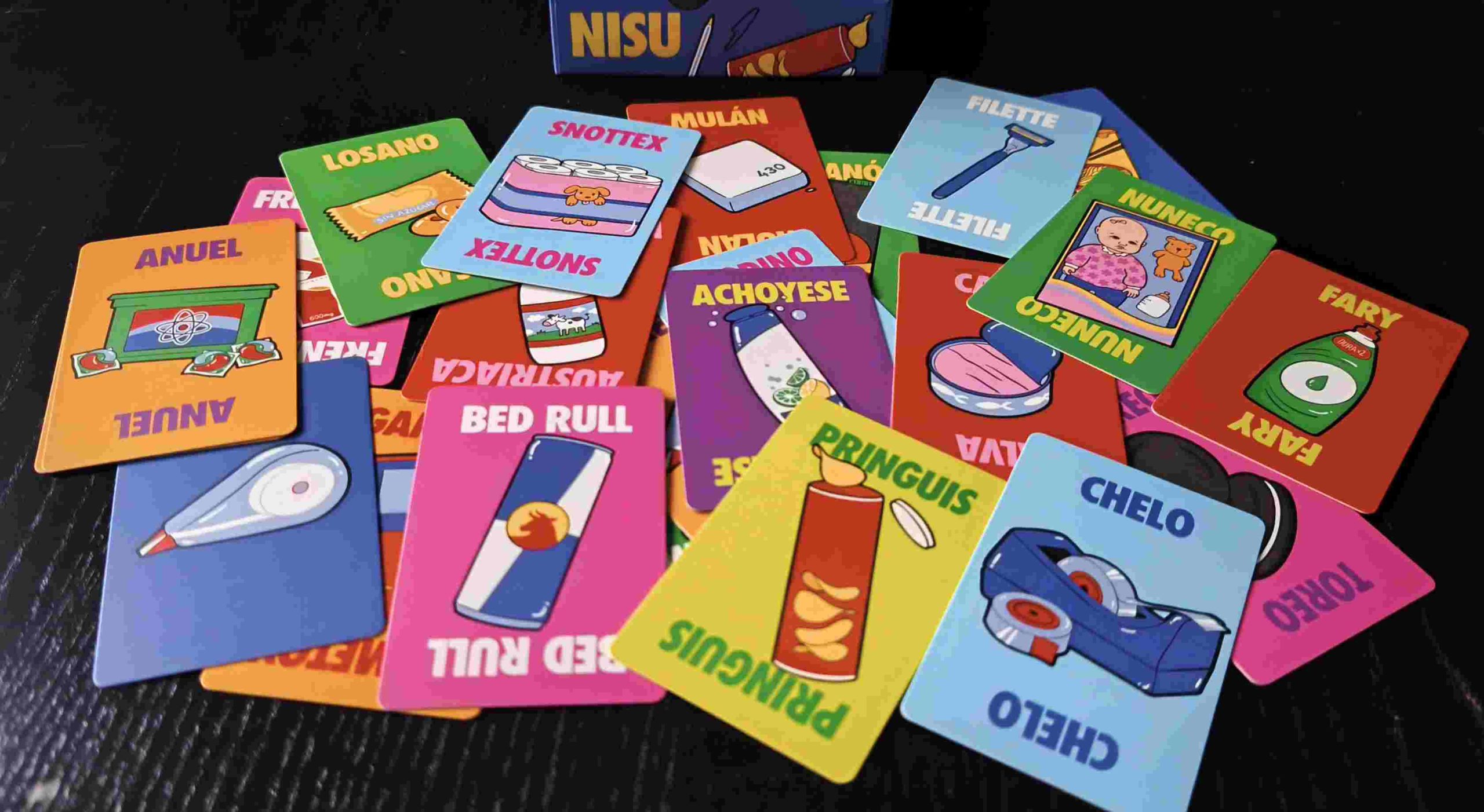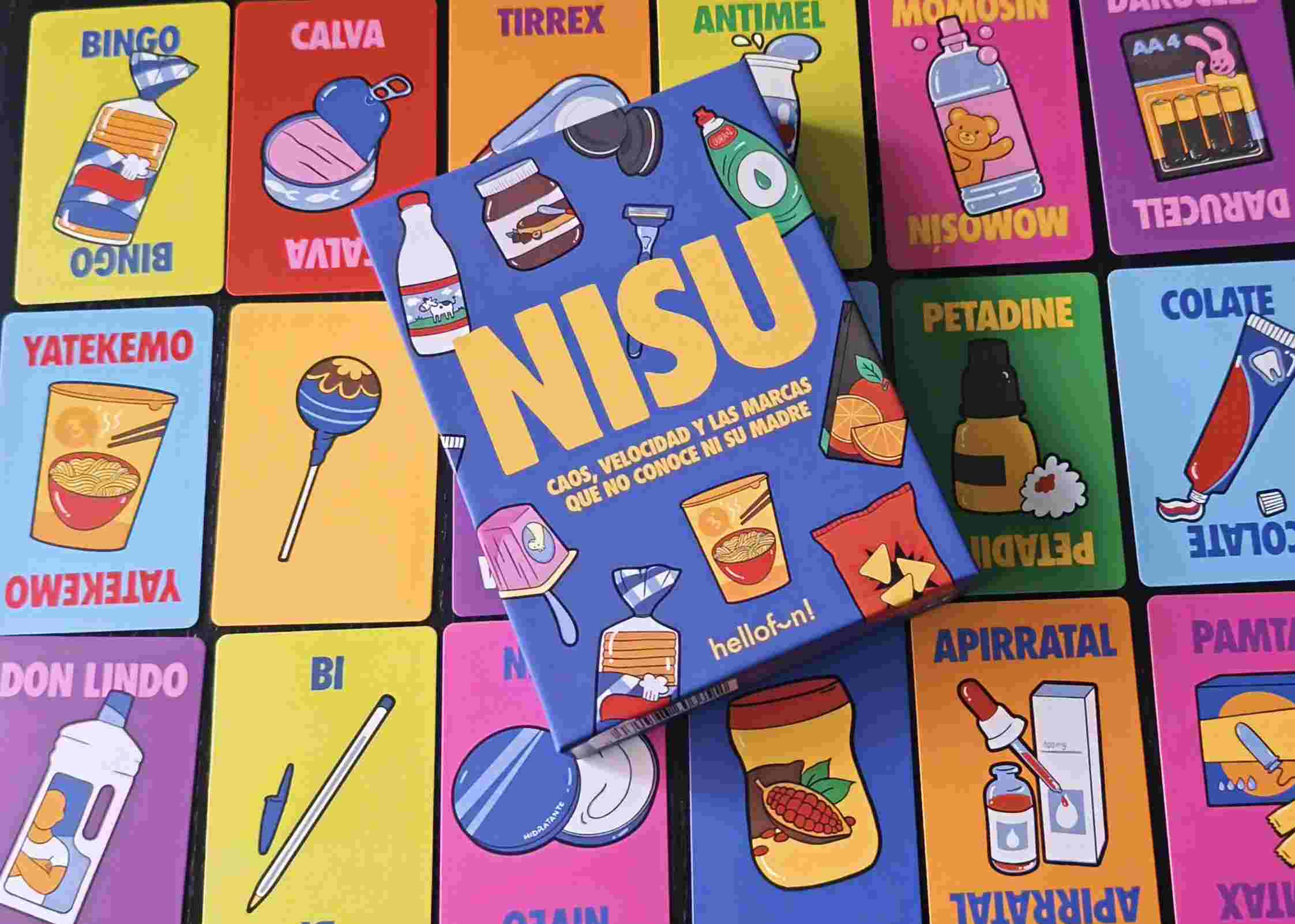 Además, hay momentos clave donde todos deben reaccionar a la vez: si coinciden colores, hay que gritar “¡NISU!” y poner la mano en el centro; si aparece una carta sin texto, toca decir la marca original lo más rápido posible. El último en reaccionar… se lleva todas las cartas.