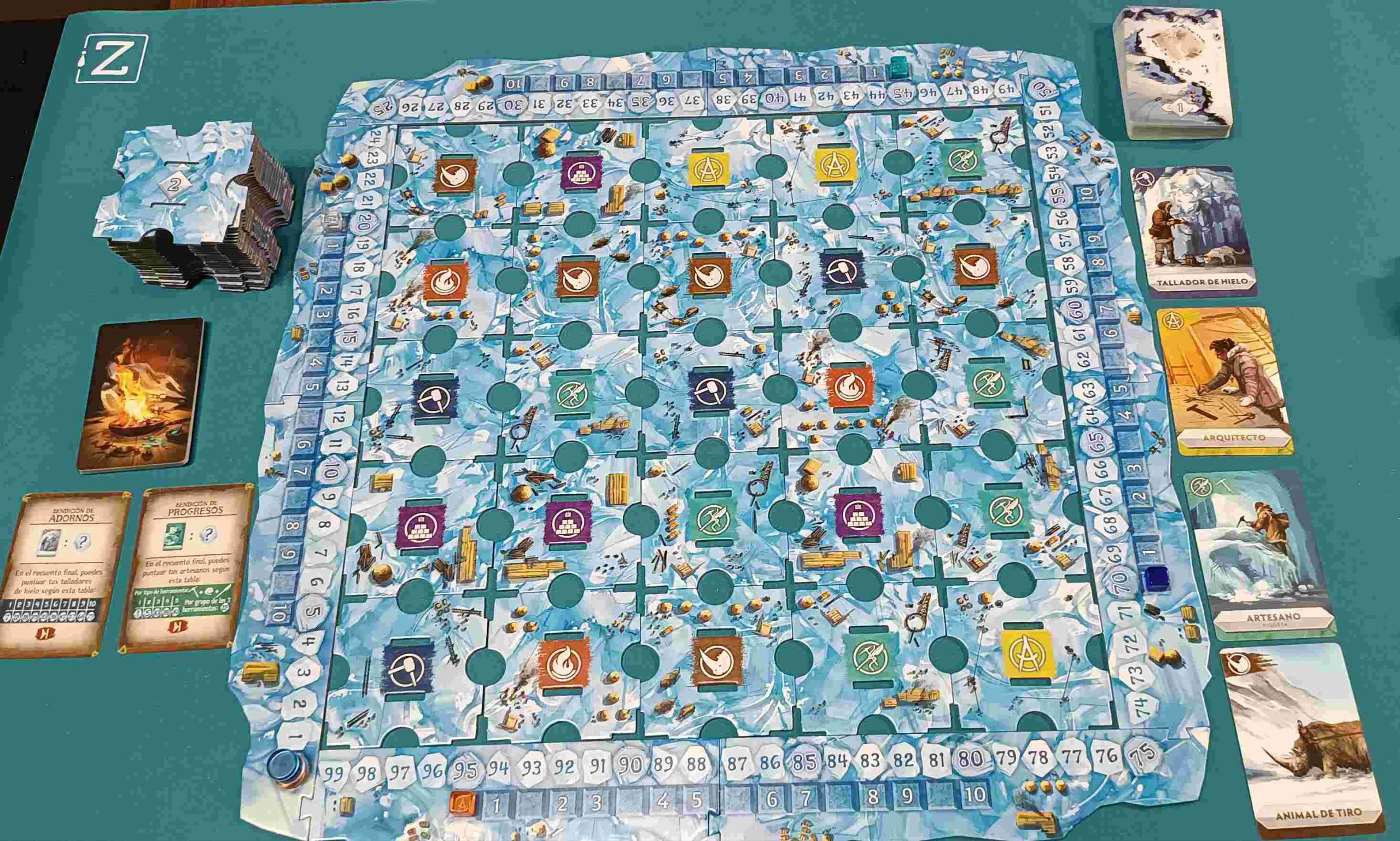 Iremos obteniendo puntos durante la partida por colocar nuestros bloques de hielo en el templo y sobre todo por las cartas de construcción que hayamos reunido.