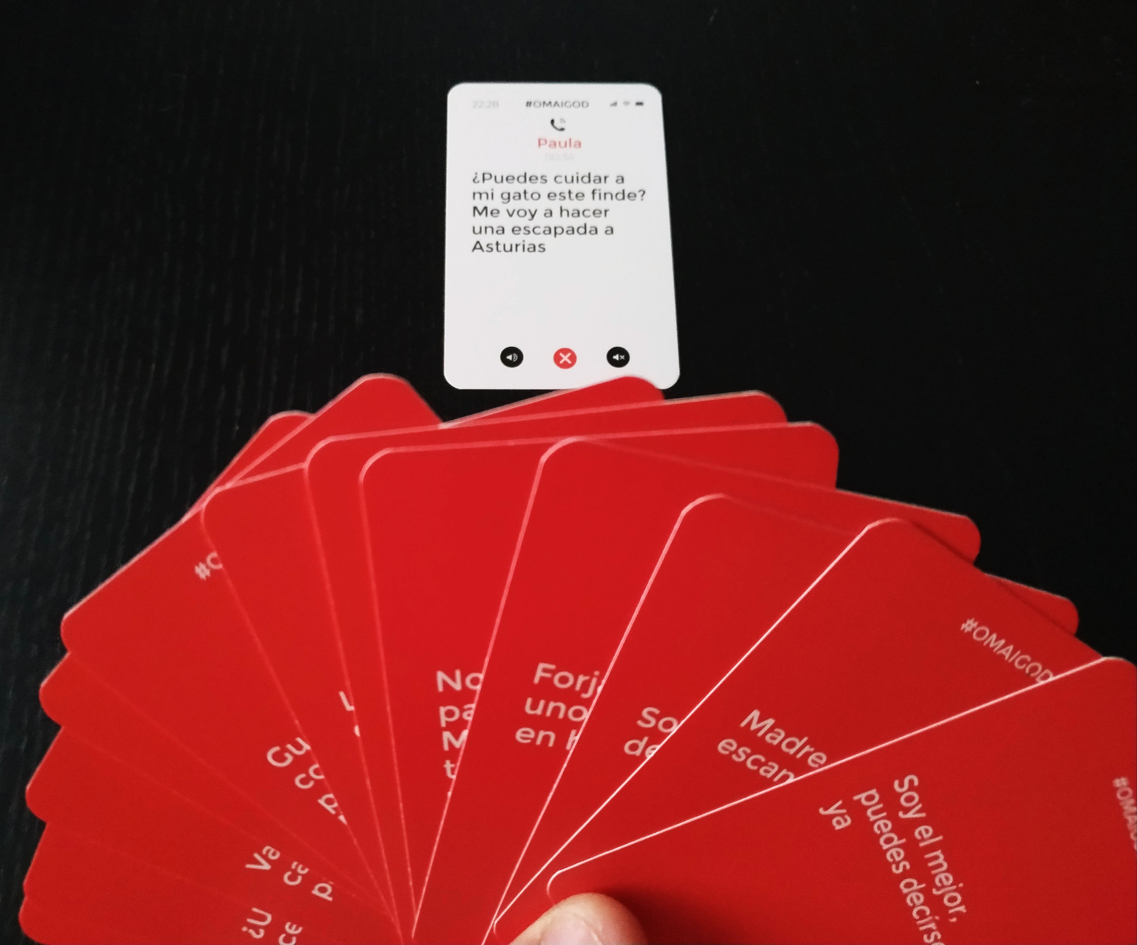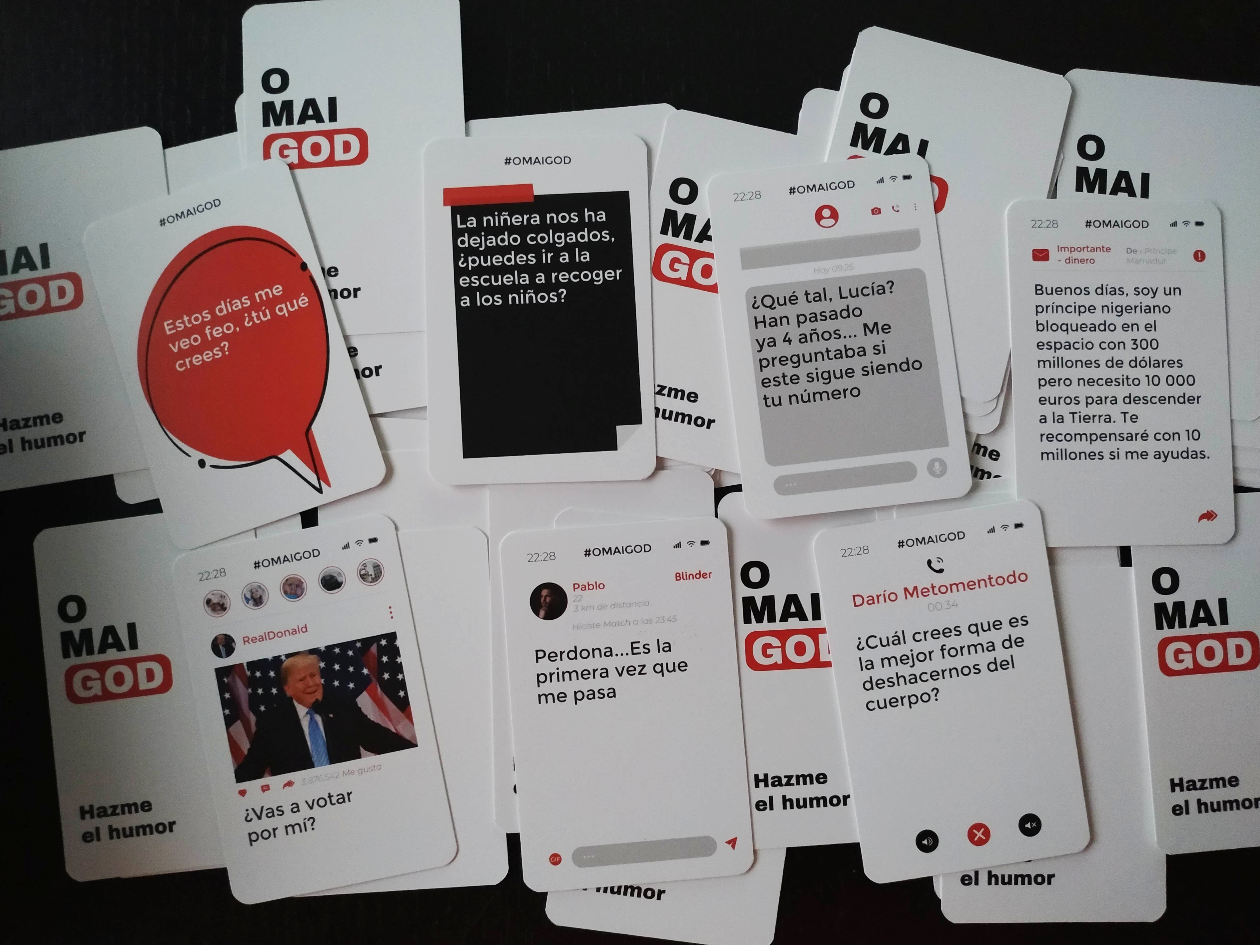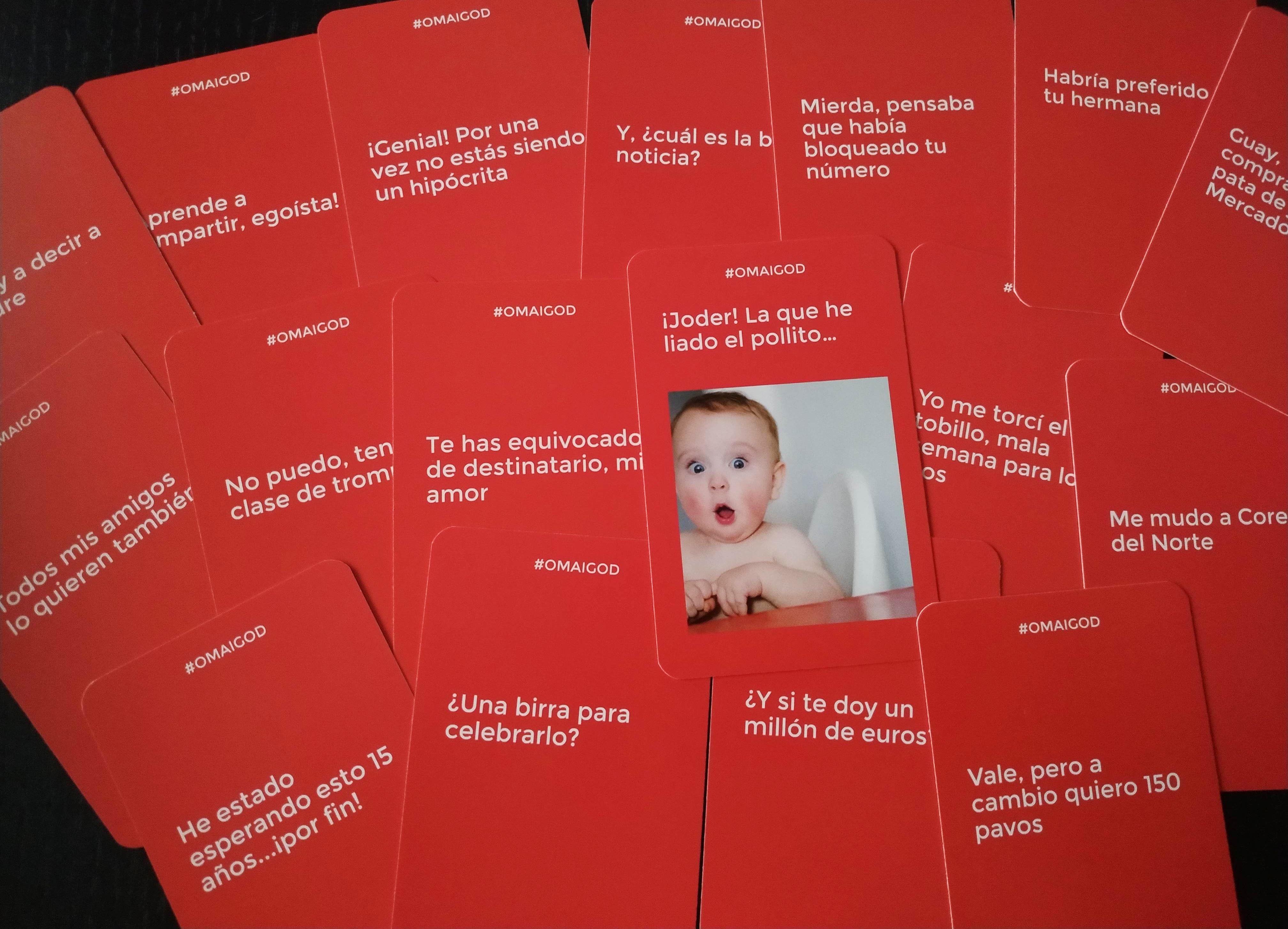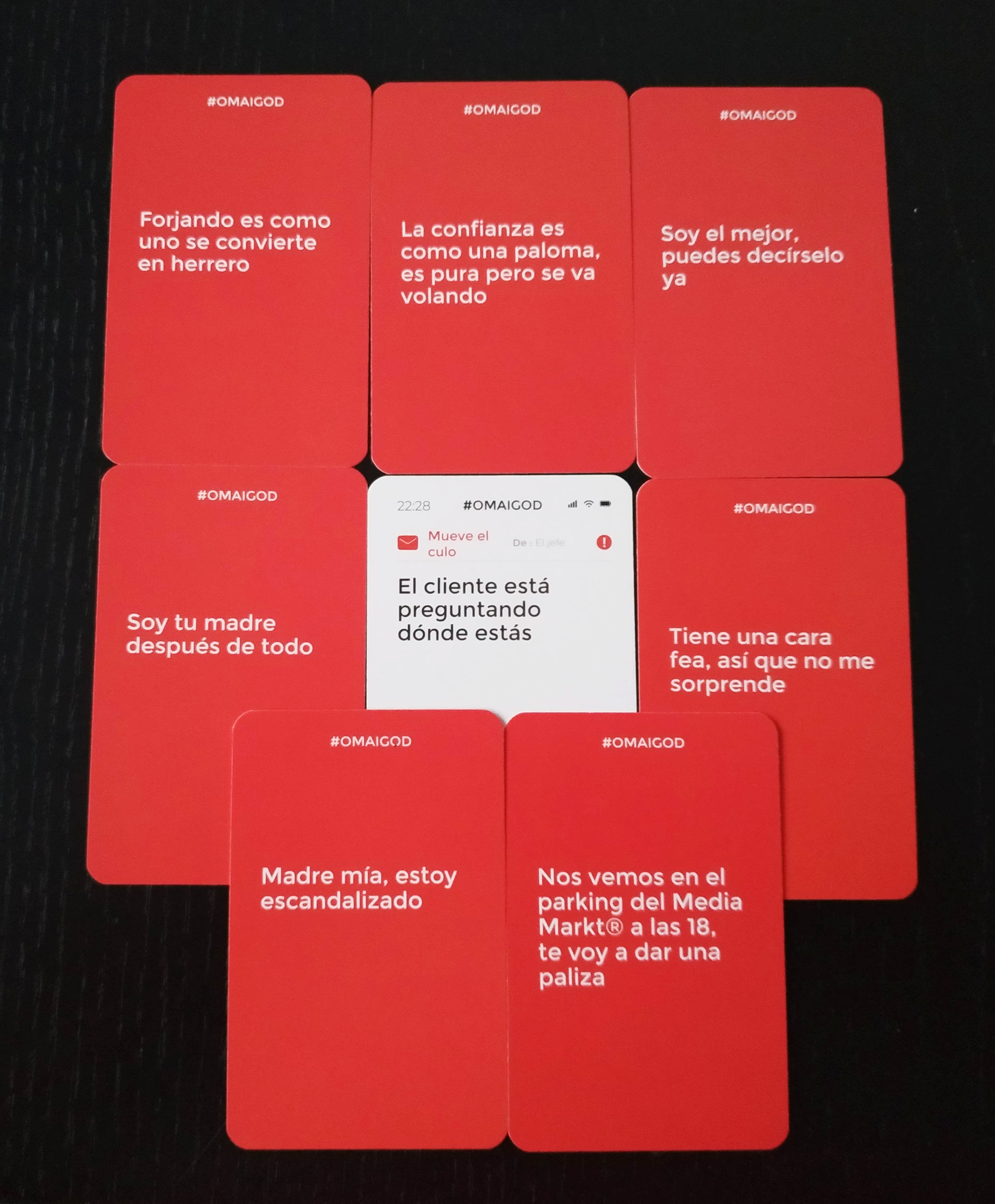 Las partidas de Omaigod se organizan de una manera muy fácil: el maestro de esa ronda saca una tarjeta blanca con un mensaje al que los demás jugadores deberán responder con una de las tarjetas rojas que tienen en su mano y que les han sido entregadas al comienzo de la partida. Rápido, fluído y directo para comenzar a disfrutar desde el momento en el que todos han participado y el maestro empieza a leer las combinaciones en voz alta. ¿Pero quién ha sido el osado que ha respondido con esa frase?