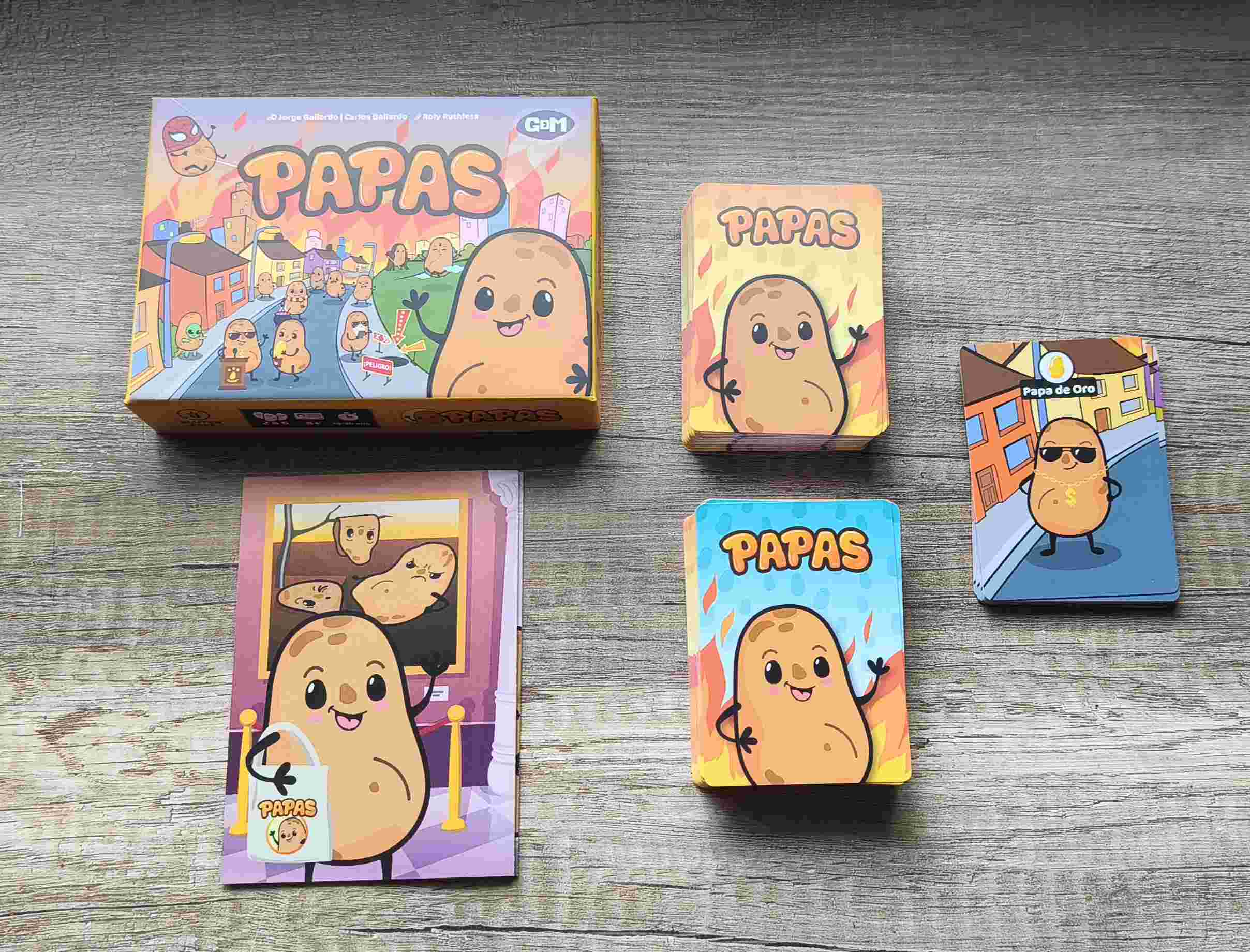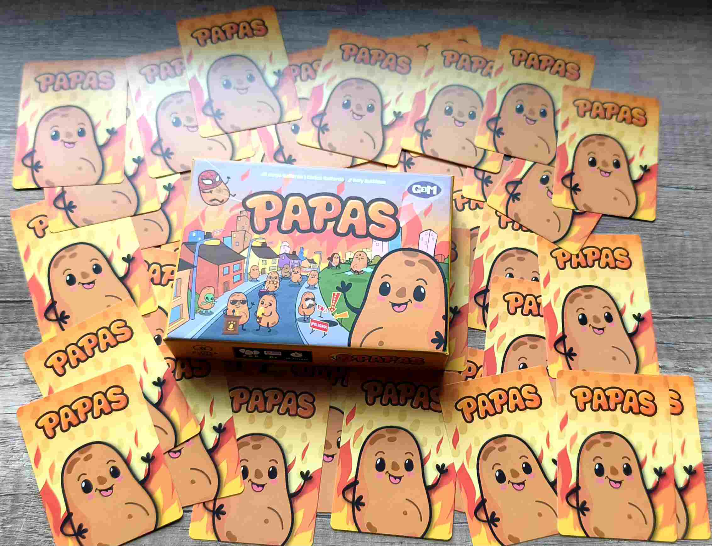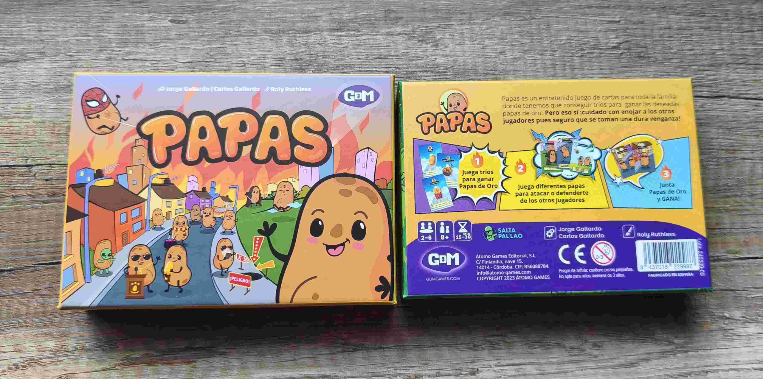 Así se presenta Papas, un juego creado por Jorge y Carlos Gallardo, ilustrado por Roly Ruthless y que nos trae la editorial GDM a España.