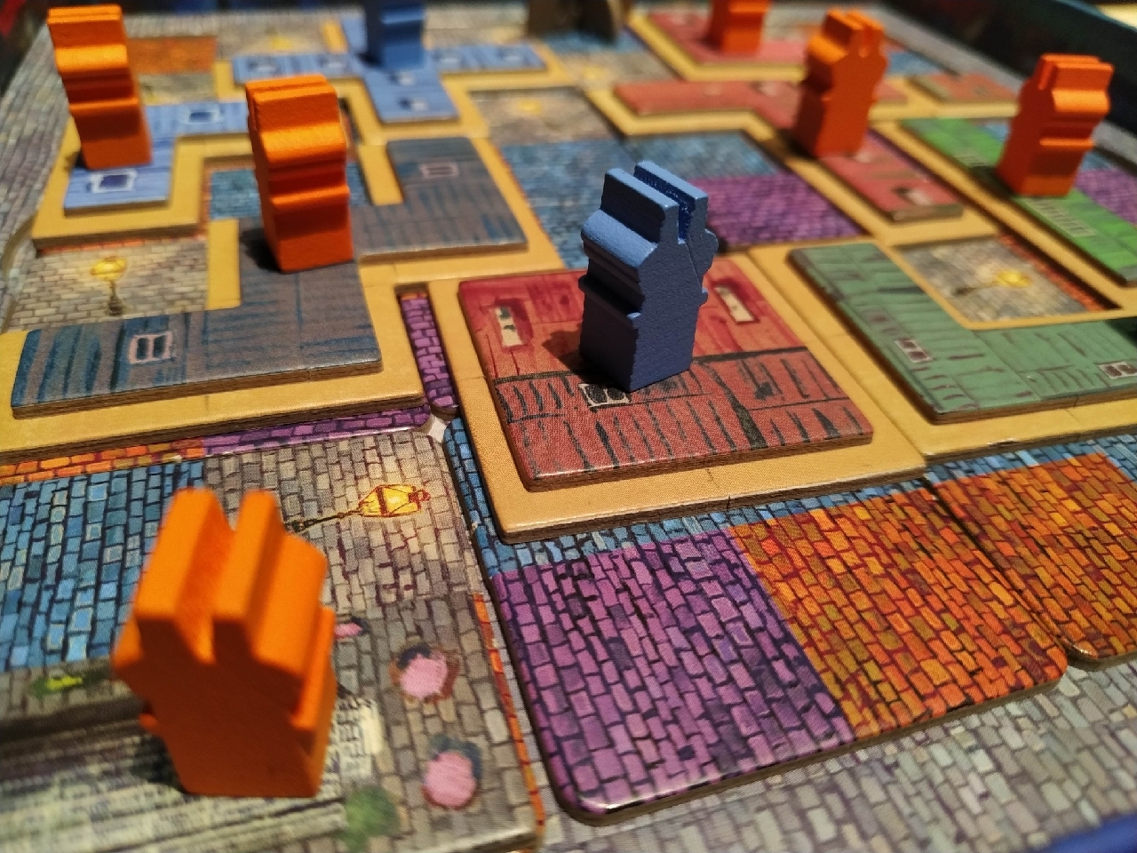 Igual de importante, sino más, es la colocación de las losetas que tienen casillas con farolas. Son tan importantes porque estas casillas son las que realmente nos otorgarán los puntos al final de la partida. No las farolas en sí, sino los edificios que son de nuestra propiedad y estén pegados a ellas.
