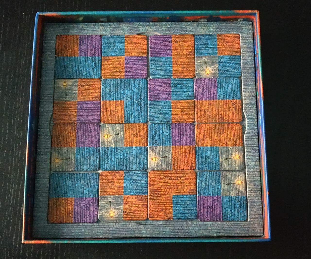 Otra de las características por las que destaca el juego es por su alta rejugabilidad. Esto es debido no solo a que, como todo juego abstracto, la estrategia y las decisiones que se van tomando durante la partida afectan radicalmente a su devenir, sino también por otros dos motivos. El primero porque, en la primera fase, las losetas que vas cogiendo son tus losetas pero son escogidas al azar. El segundo motivo es porque el juego contiene 12 postales y en cada partida solo utilizamos 8 de ellas dotándole así de una variabilidad muy acertada ya que, en función de las postales disponibles, la estrategia y la decisión de los jugadores pueden variar sustancialmente.