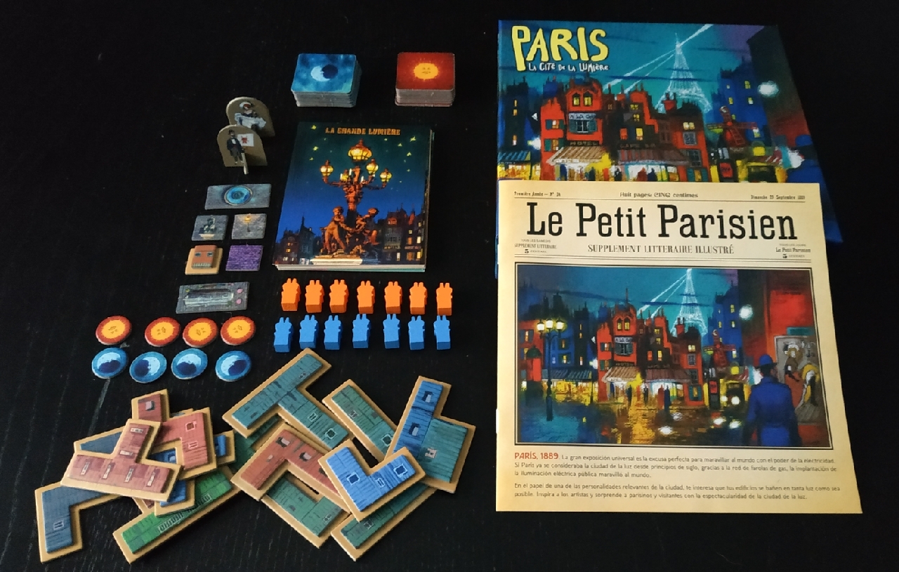 Este juego abstracto para dos jugadores nos transporta a la ciudad de la luz para que creemos una superficie de adoquines y farolas y después construyamos sobre ella diferentes edificios que nos otorgarán más puntos cuanto mayor sea su iluminación.