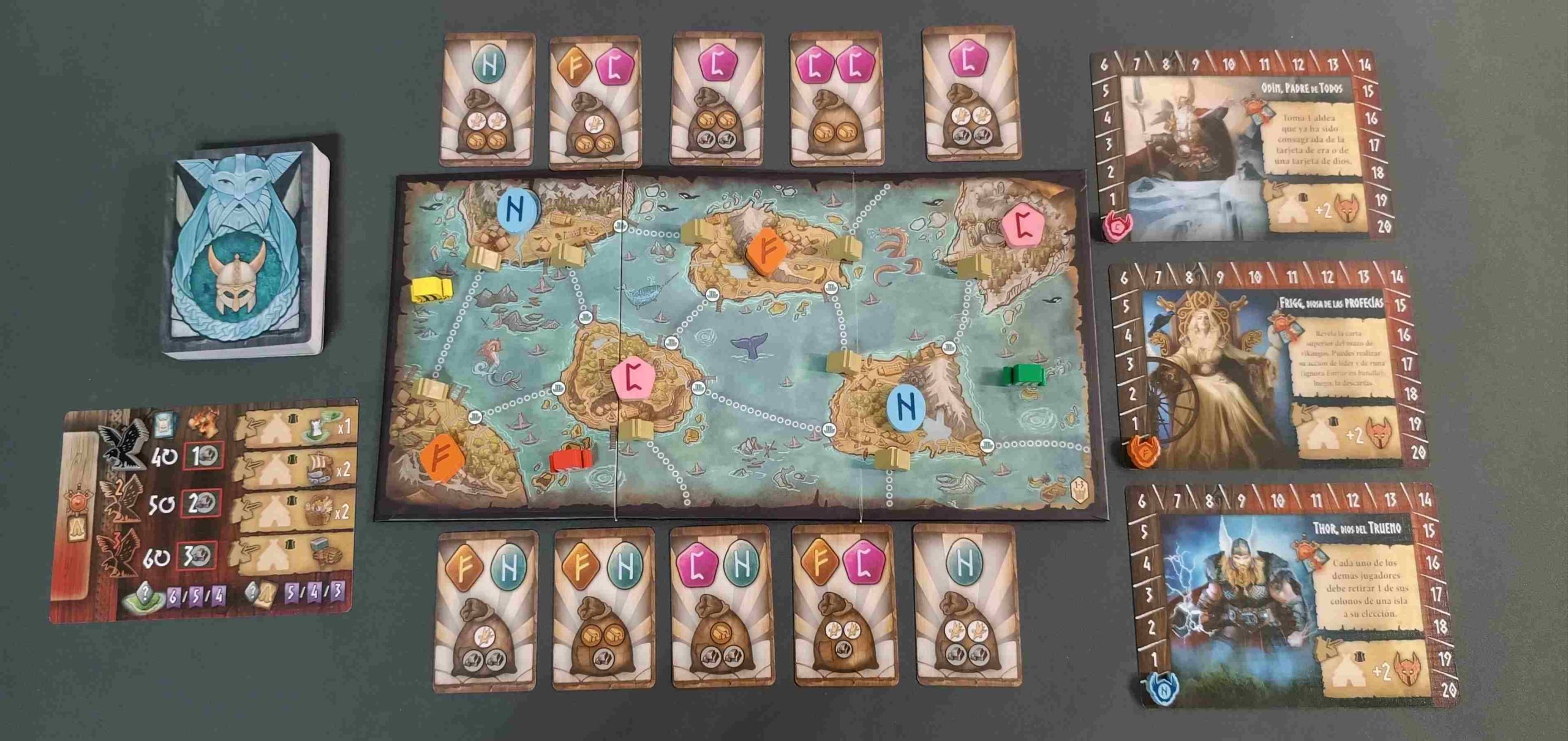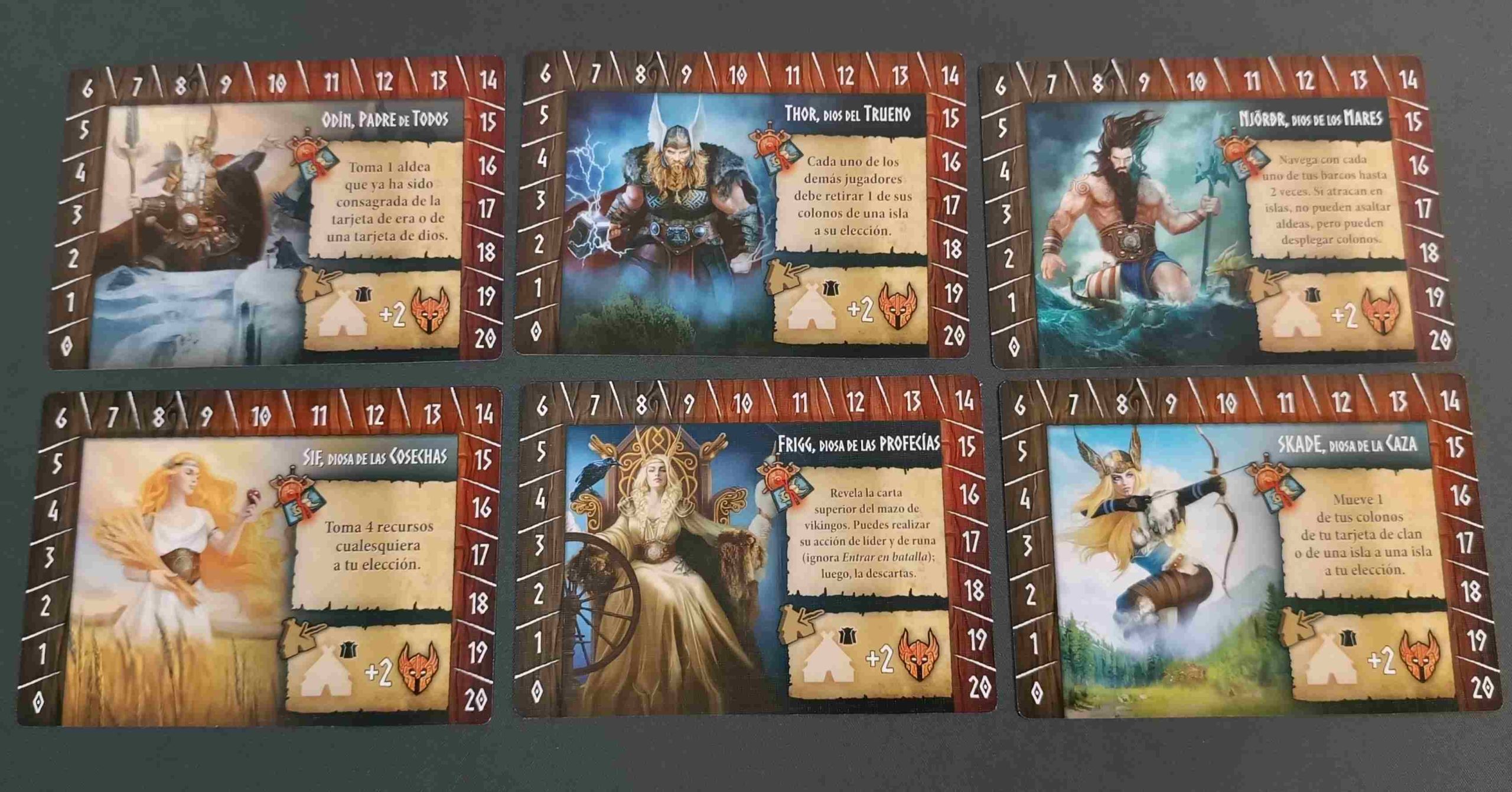 Recordemos que este valor es sumamente importante para determinar qué dios es el que luego aporta más puntos a nuestras runas. Esto se debe a que, al final de la partida, los jugadores obtendrán puntos por las runas, tanto de islas como de las cartas de favor que controlen, y cada tipo de runa dará más o menos puntos en función del ranking que ocupen de los dioses que tienen asociados.