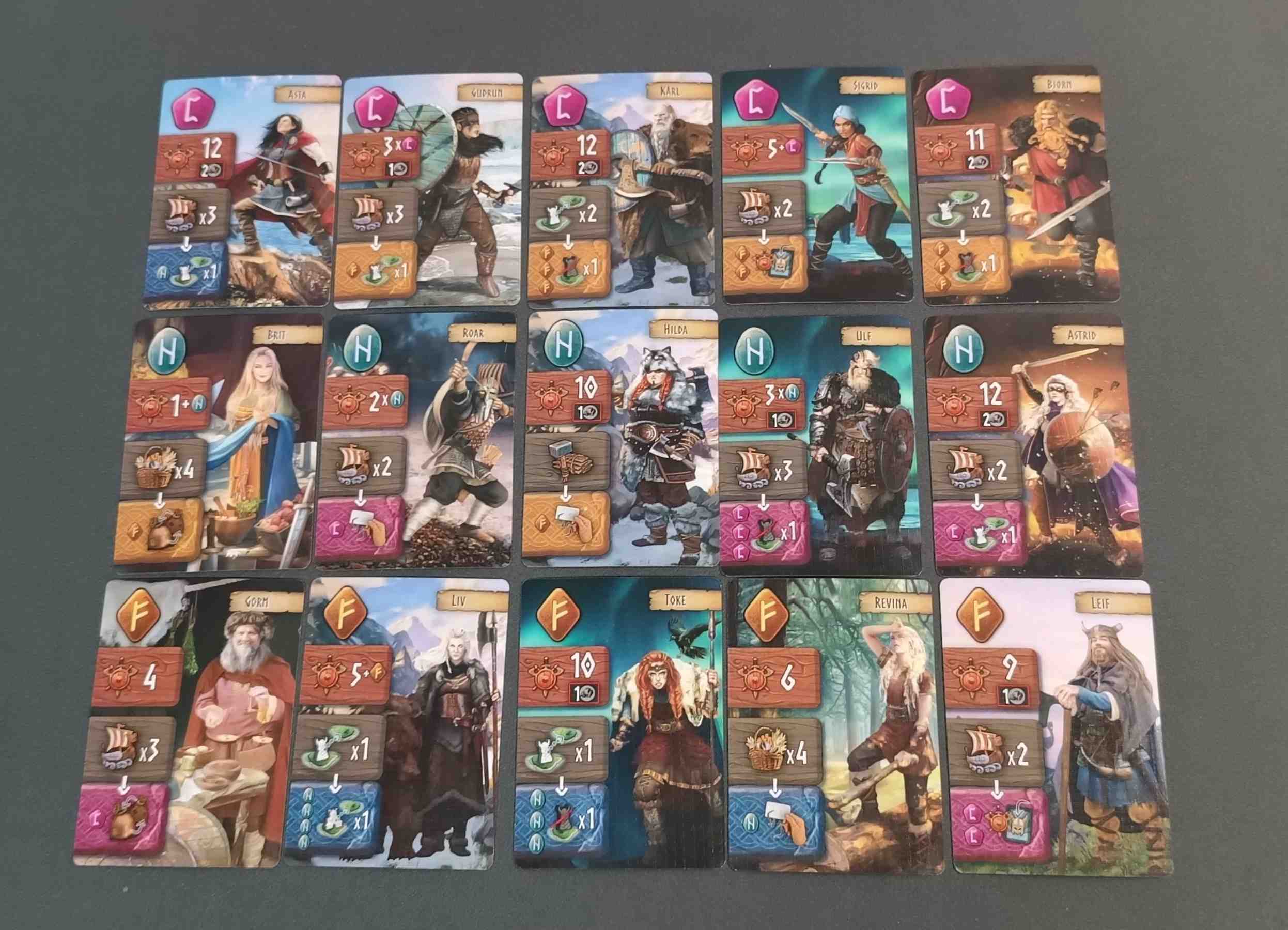 Esto se conseguirá, como decíamos, a lo largo de 3 eras, o rondas, y divididas, a su vez, en 3 fases. En la primera fase de cada ronda, se realizará el comentado draft de las cartas de líder vikingo. Es decir, se repartirán una serie de cartas a cada jugador, dependiendo de la era serán 4, 5 o 6 cartas respectivamente, y cada uno deberá quedarse con una y pasar el resto al jugador de al lado recibiendo de su otro jugador sus sobrantes. Harán lo mismo hasta que todos hayan escogido todas las cartas y no haya más que pasar. En ese momento, pasarán a la segunda fase.