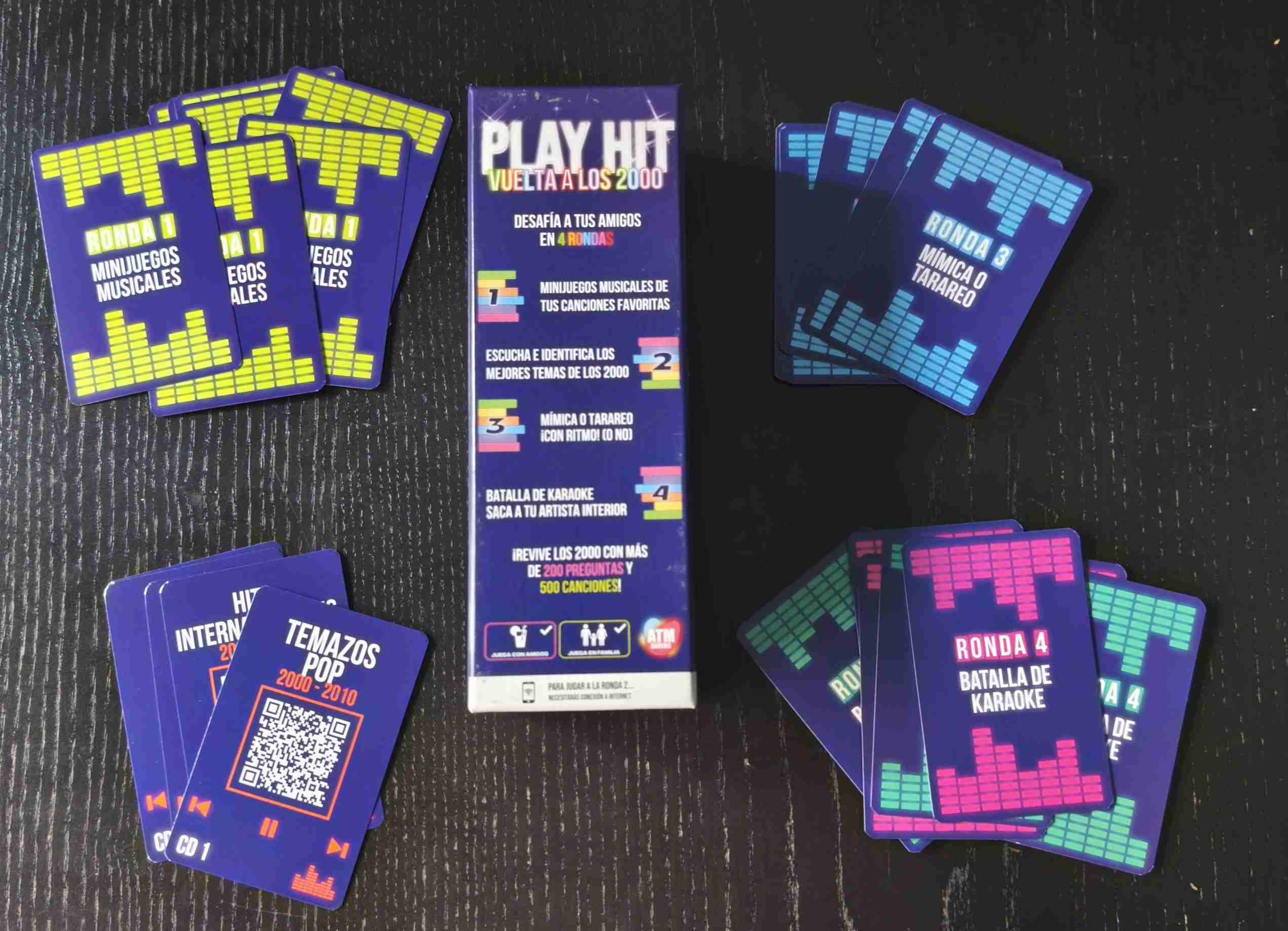 Incluye más de 200 cartas para las 4 rondas (minijuegos, playlists, mímica y karaoke), además de la caja que se usa como micrófono. El diseño es colorido y festivo, con una clara inspiración en los años 2000, lo que refuerza el aire nostálgico y musical de la experiencia.